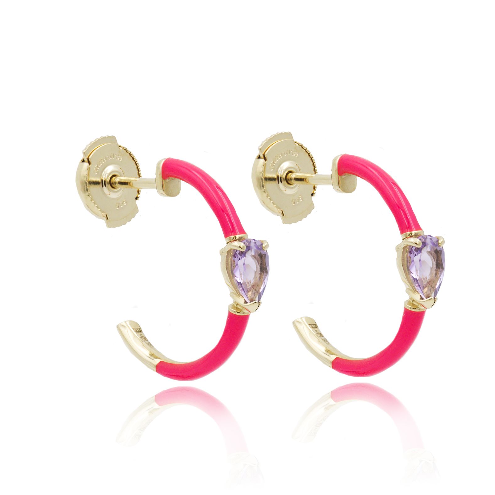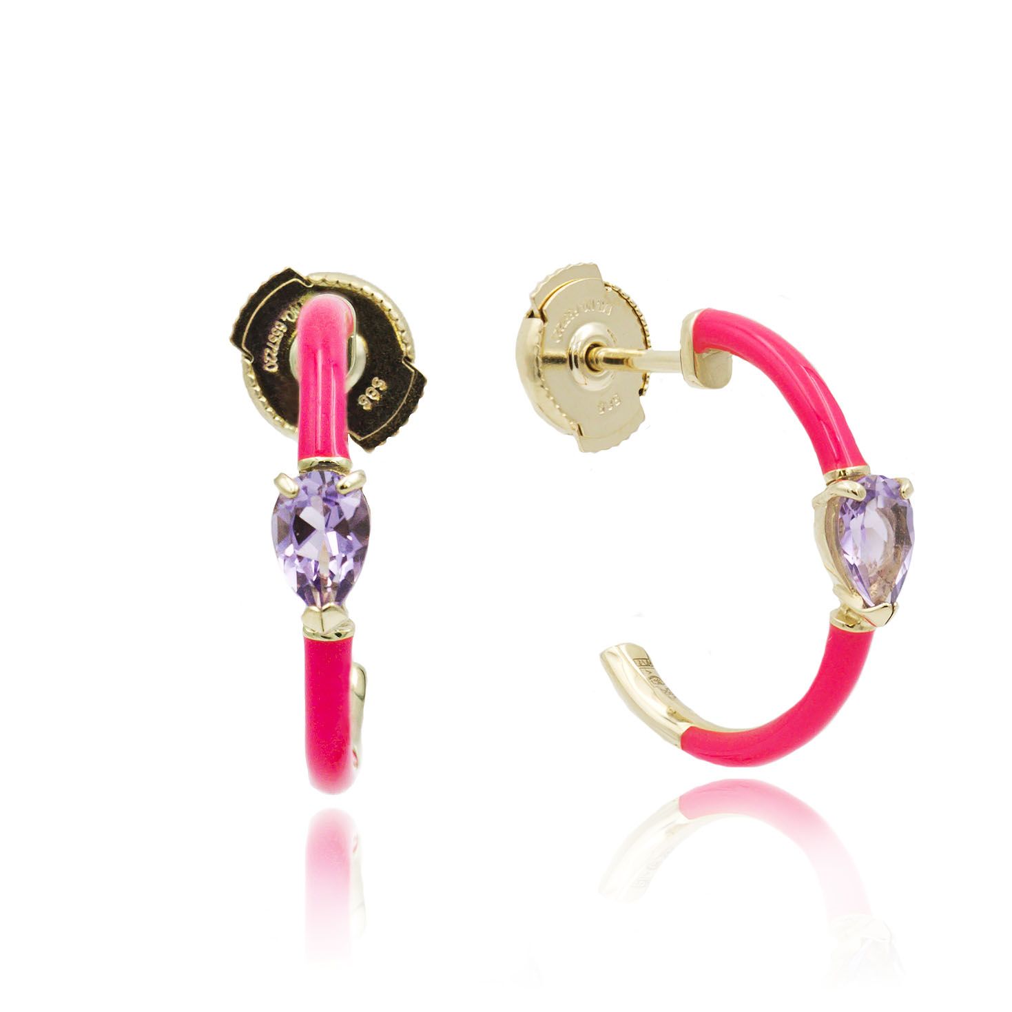 Пусеты из желтого золота с аметистами — это настоящий шедевр в мире украшений. Золото, как нежная карамель, окутывает вас своим блеском и теплом, а фиолетовая глубина аметистов напоминает аппетитный виноградный мусс. Сочетание этих двух материалов создает эффект невероятной гармонии и изысканности, привлекая взгляды своим блеском и утонченностью.