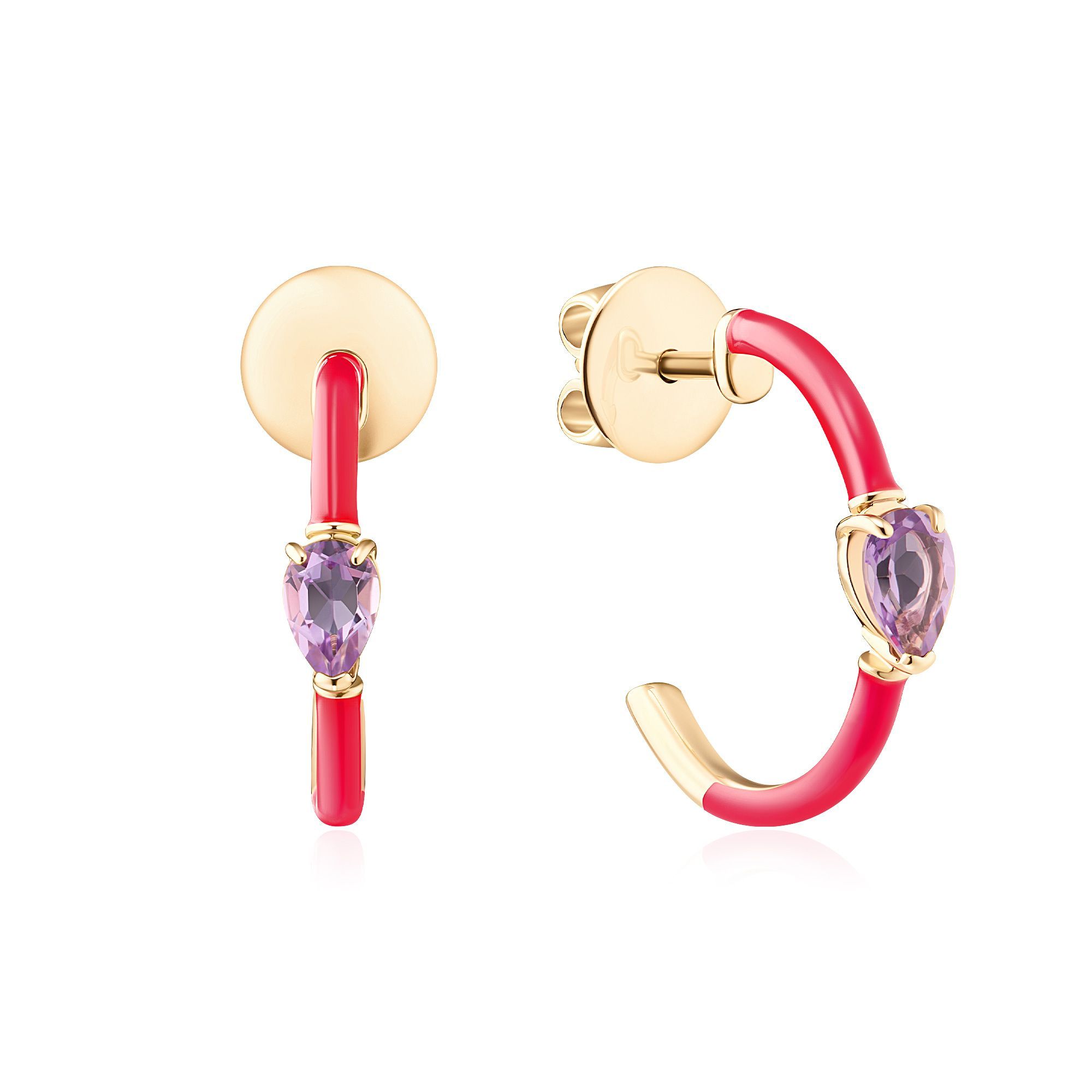Пусеты из желтого золота с аметистами