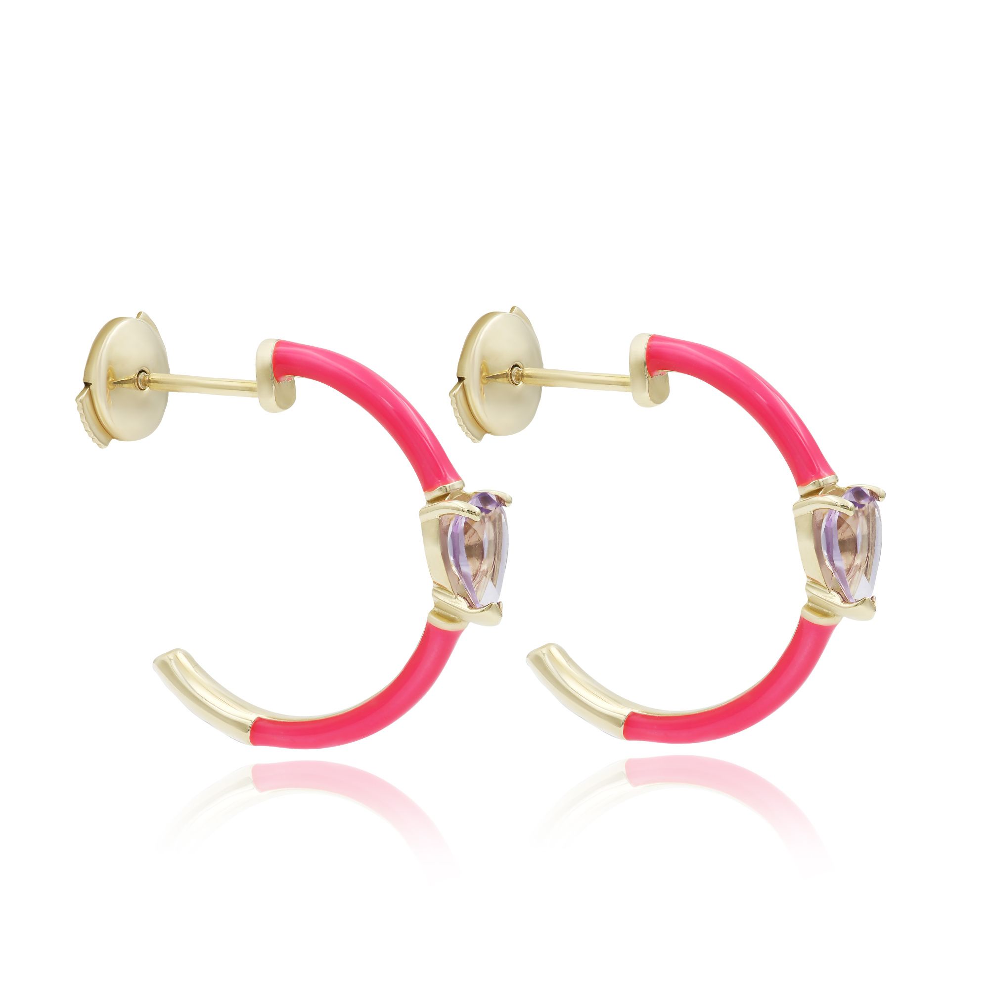 Пусеты из желтого золота с аметистами