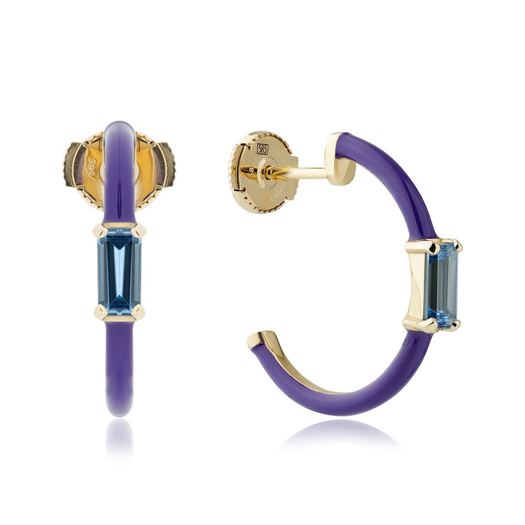 Пусеты из желтого золота, увенчанные фиолетовой эмалью и яркой голубой шпинелью, напоминают сладкие конфеты. Их яркие неоновые цвета похожи на радужные леденцы, а геометрия создает неповторимый и совершенно оригинальный образ. Каждый элемент этого изделия подчеркивает индивидуальность и стиль своей обладательницы. Эти пусеты станут идеальным дополнением к яркому образу.