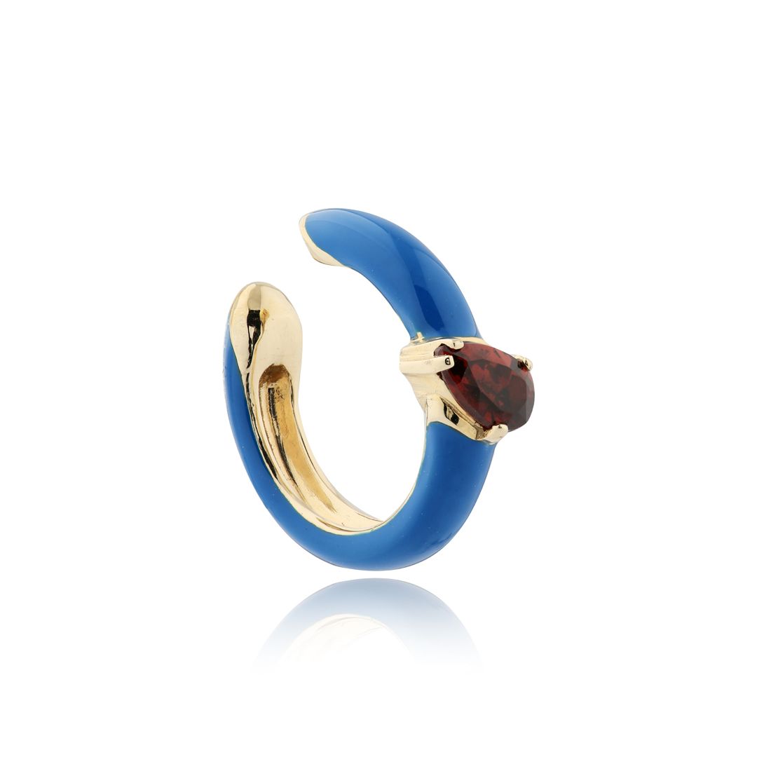 Серьга кафф из желтого золота с гранатом