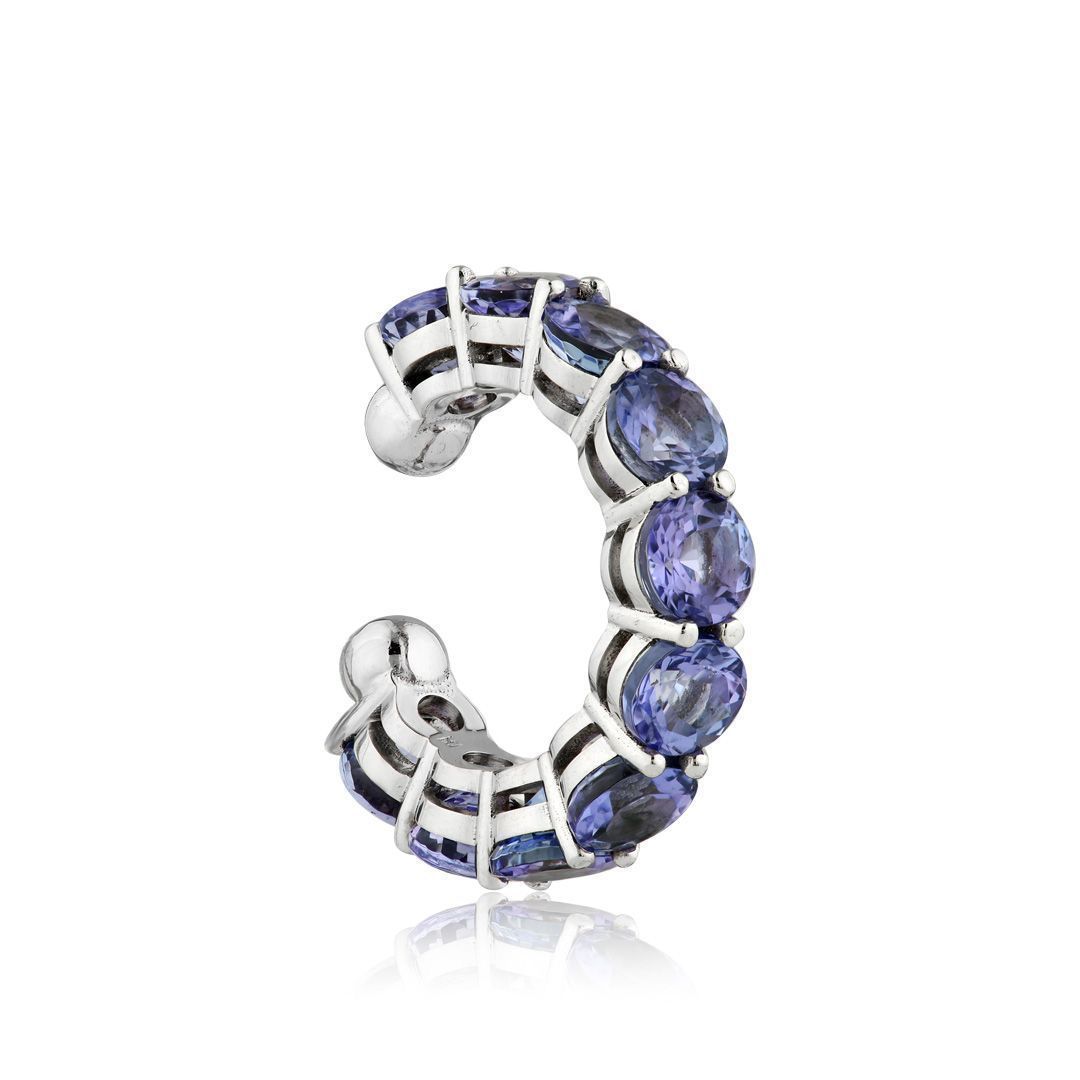 Серьга кафф из белого золота с танзанитами