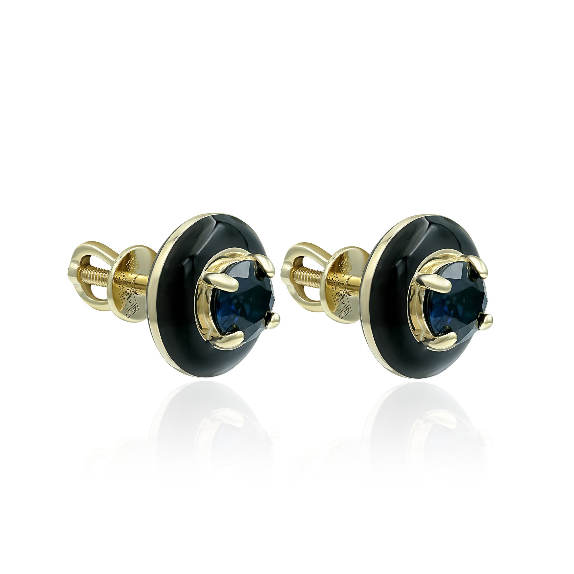 Пусеты из желтого золота с сапфирами