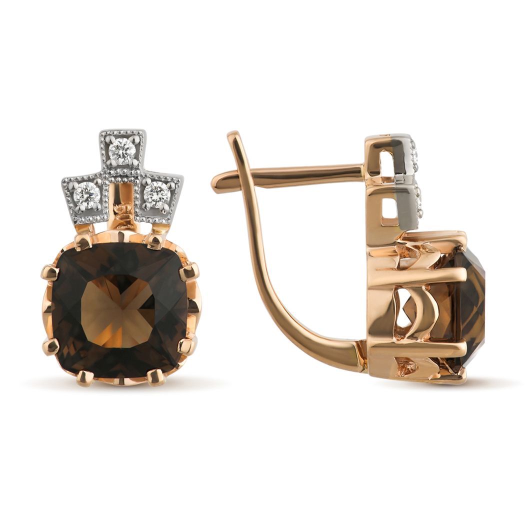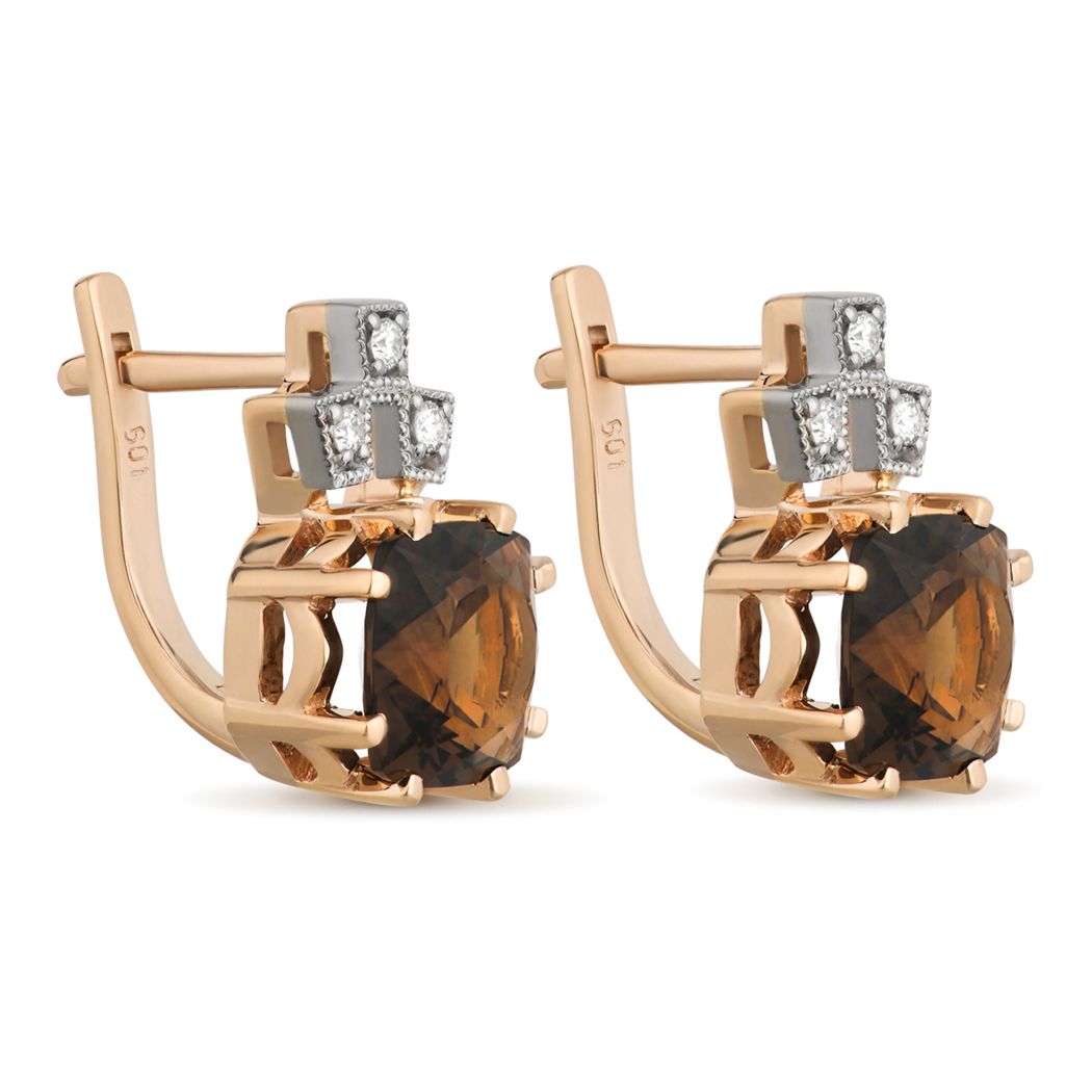 Серьги из красного золота с бриллиантами и кварцами