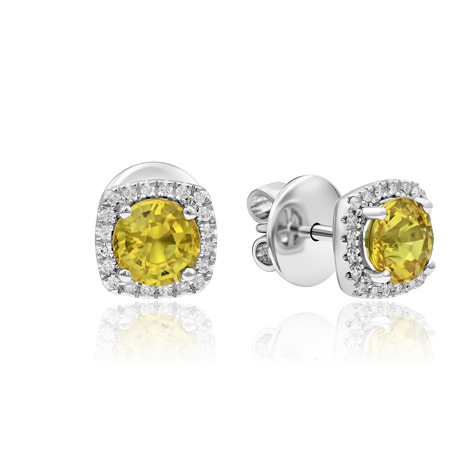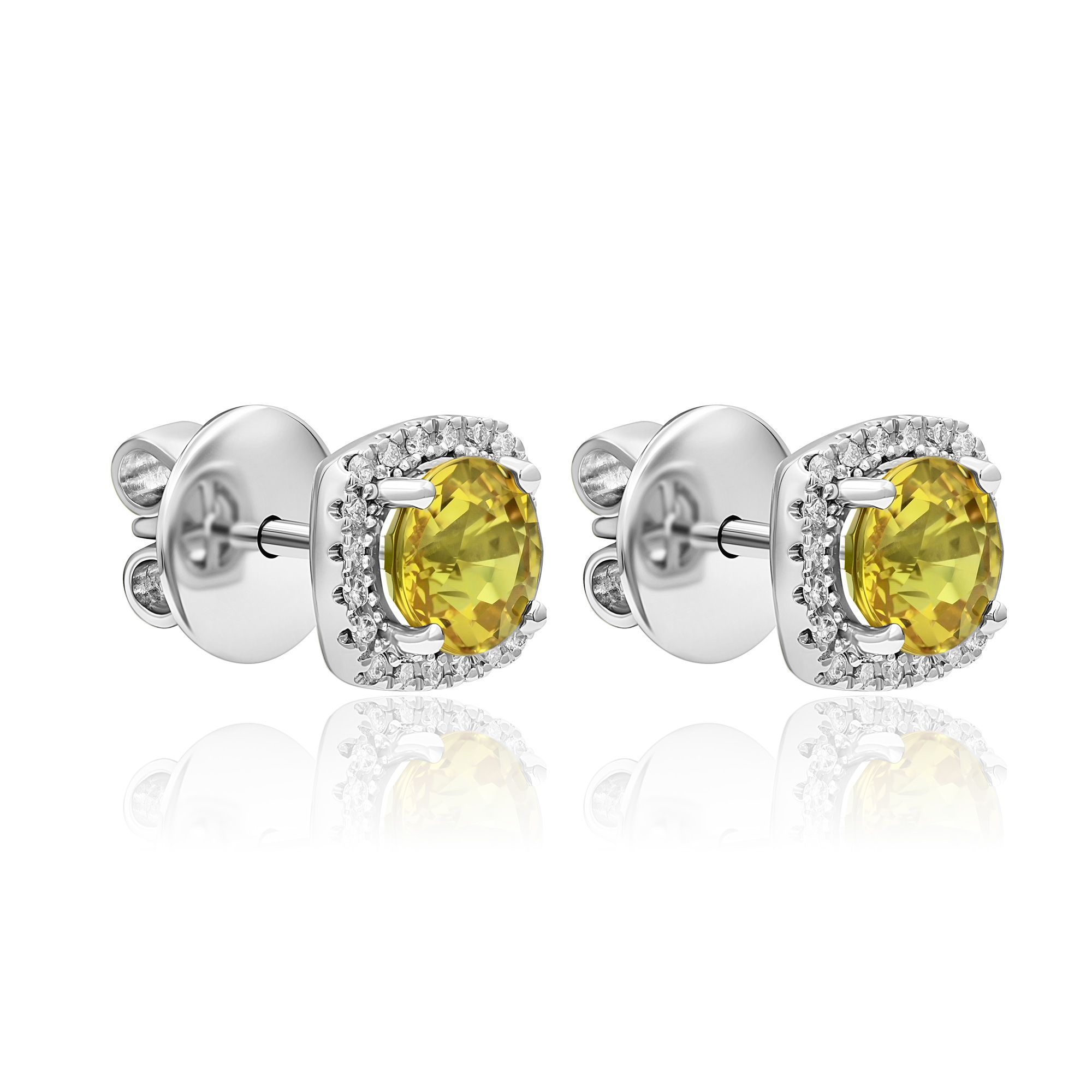 Пусеты из белого золота с бриллиантами и сапфирами