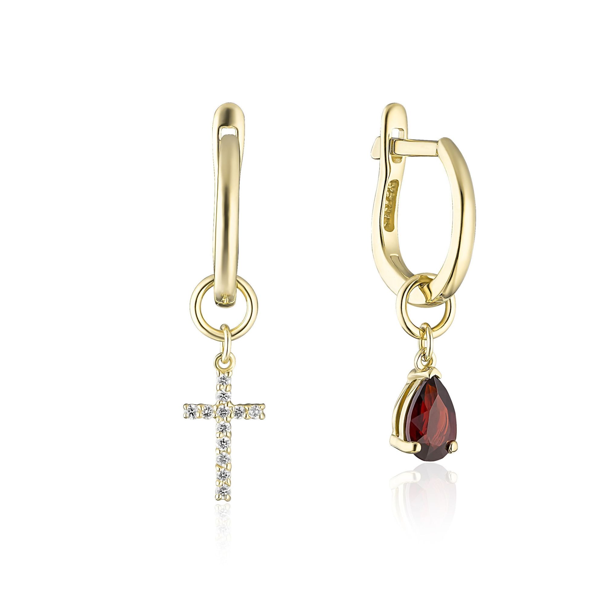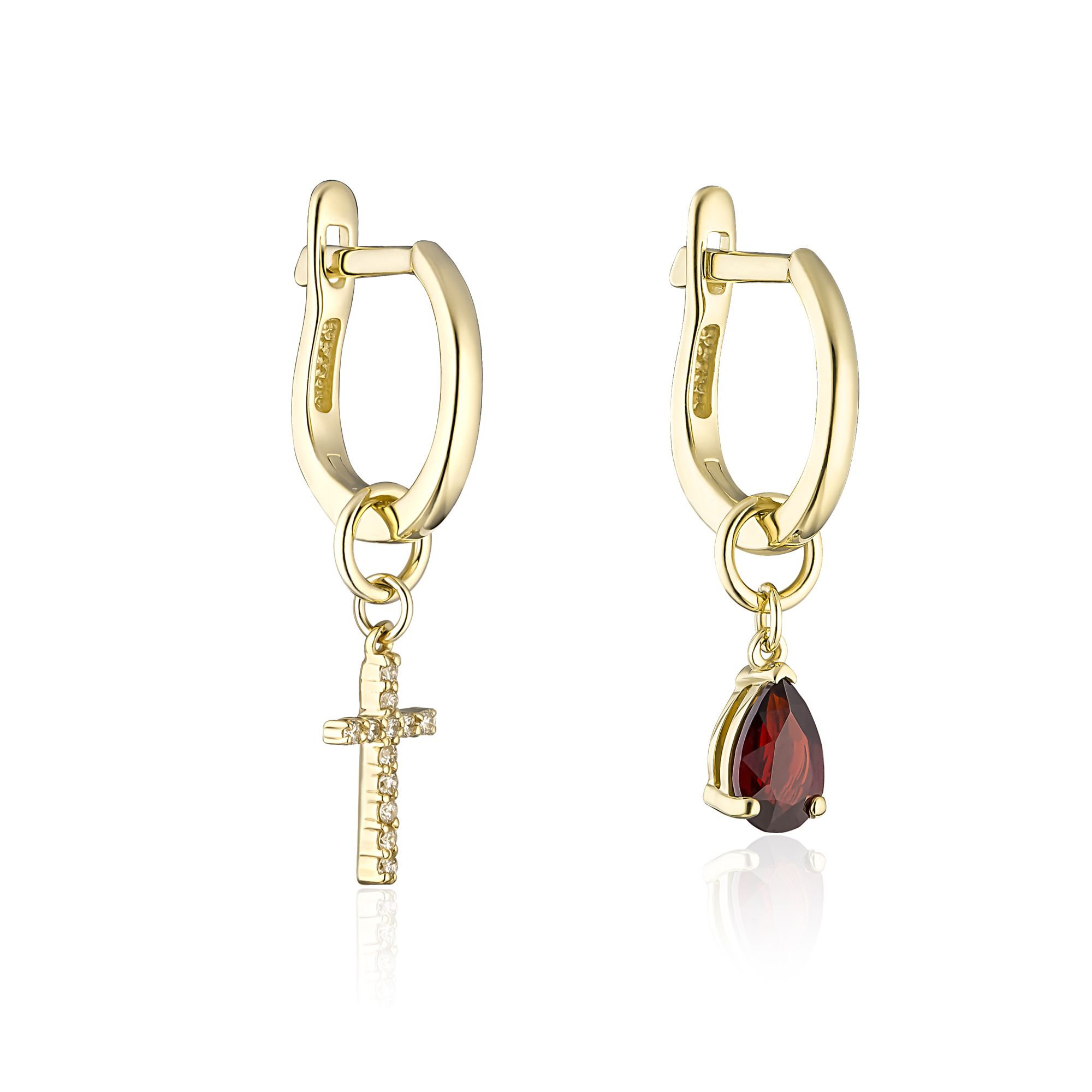 Серьги из желтого золота с гранатом и бриллиантами