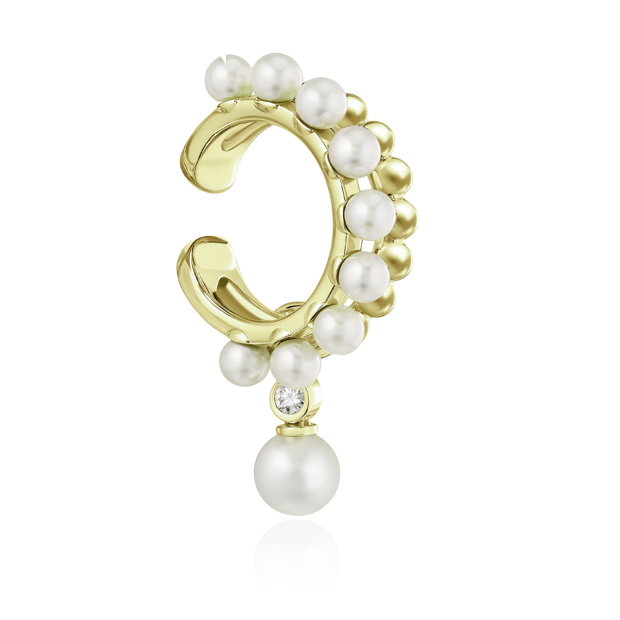 Серьга кафф из желтого золота с бриллиантом и жемчугом