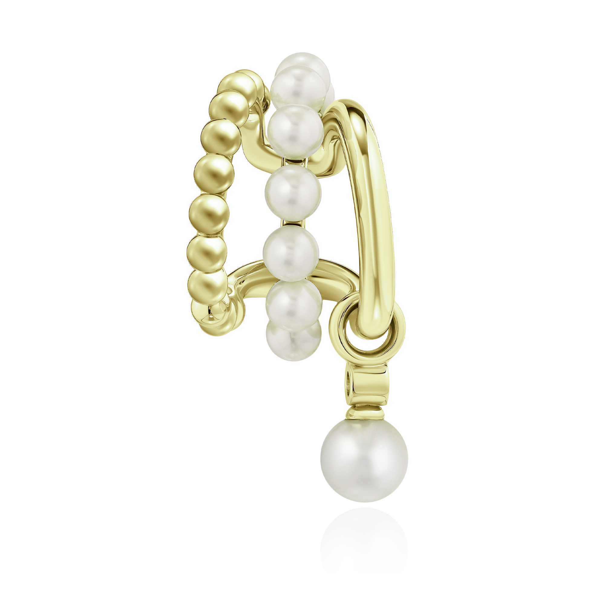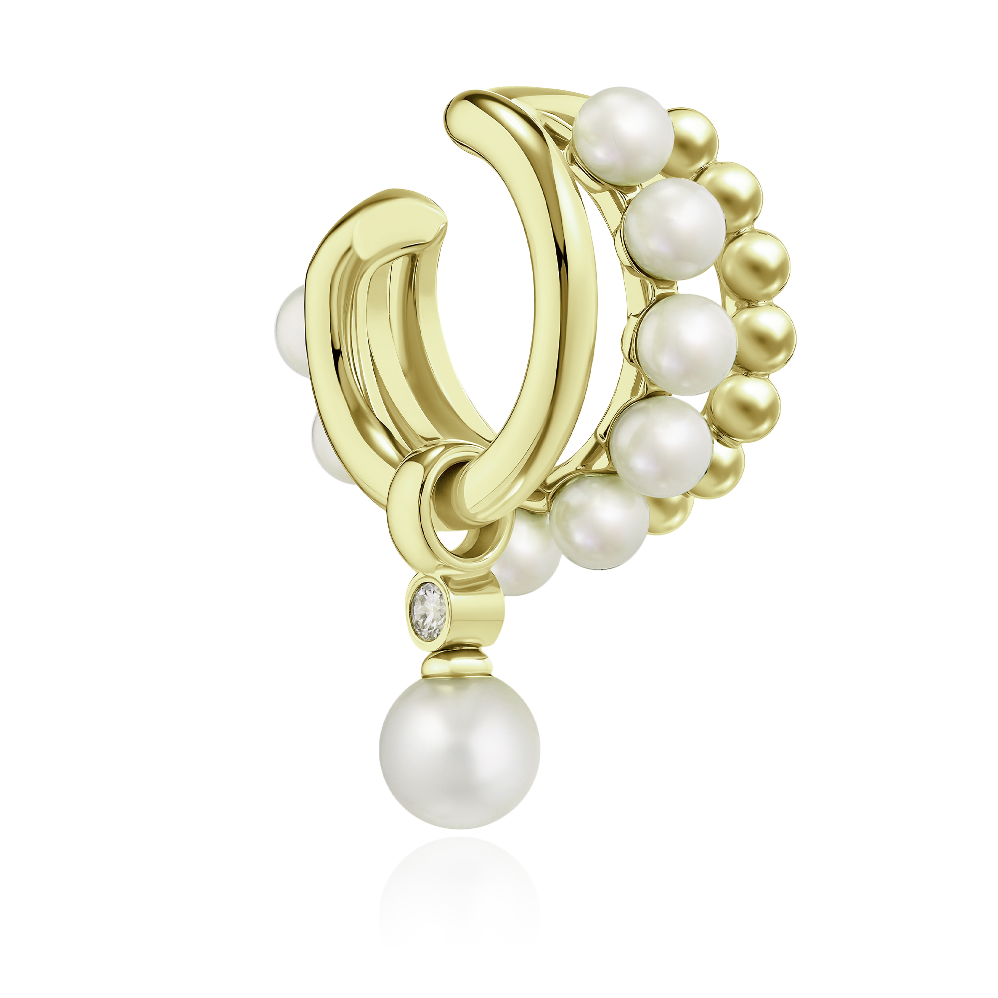 Серьга кафф из желтого золота с бриллиантом и жемчугом