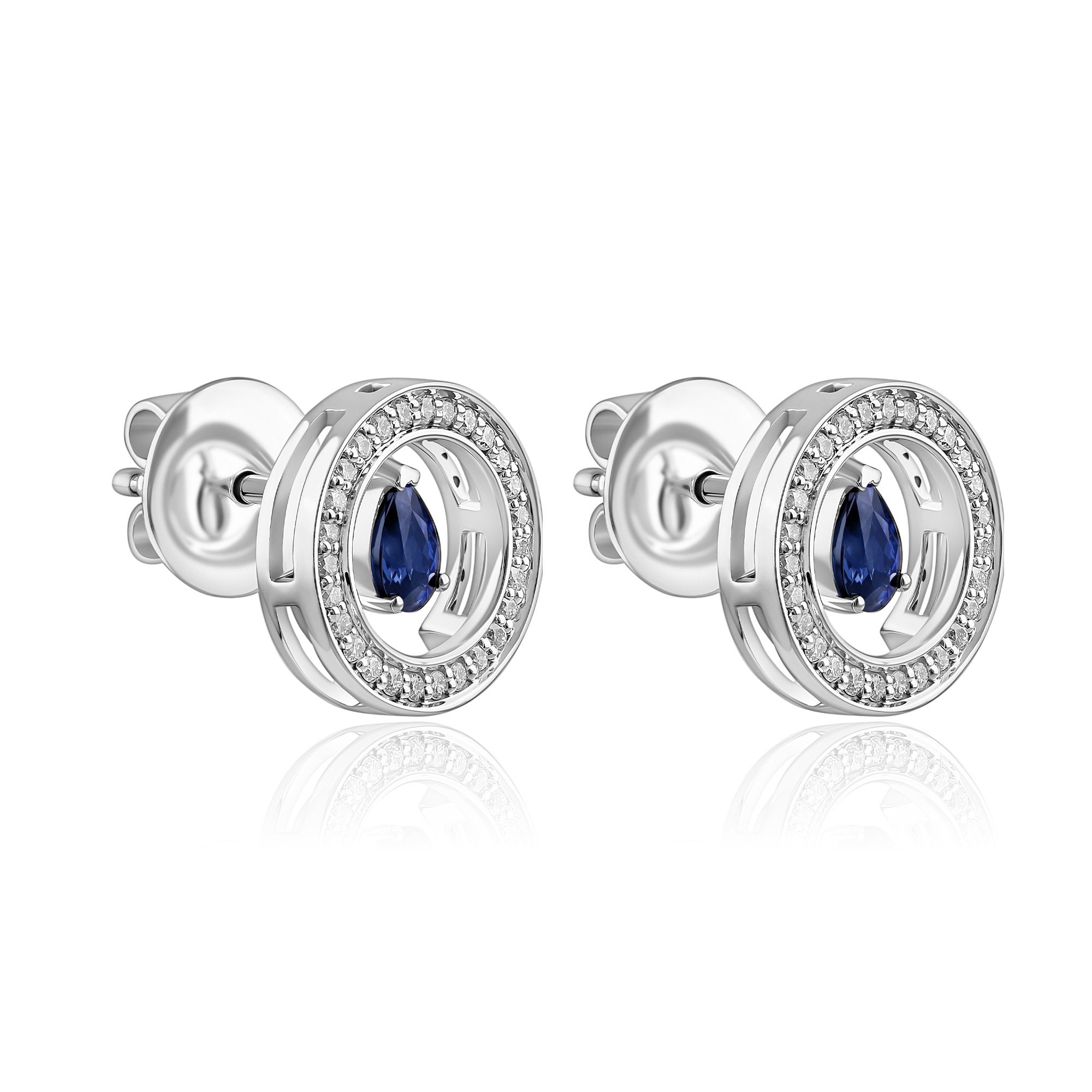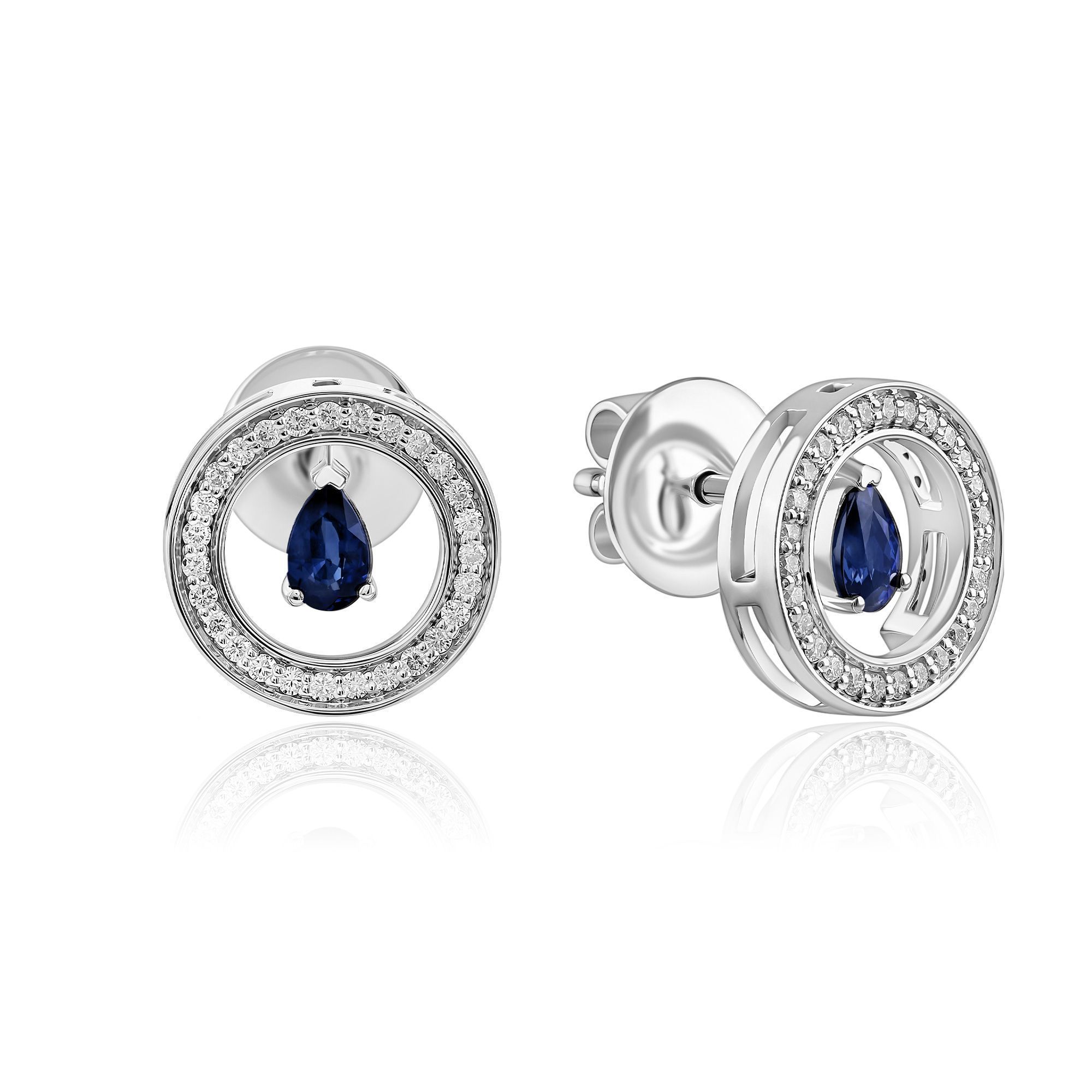 Пусеты из белого золота с бриллиантами и сапфирами
