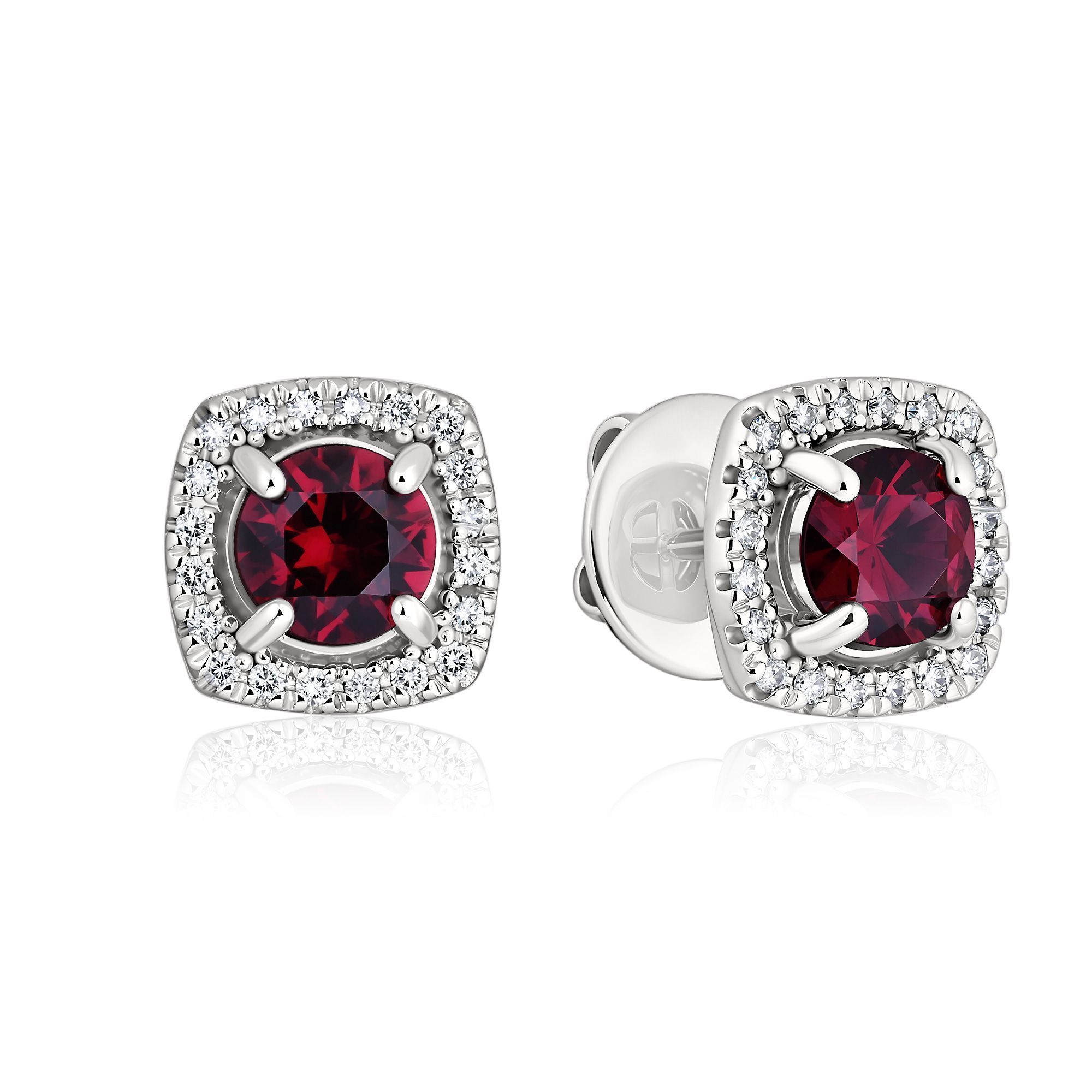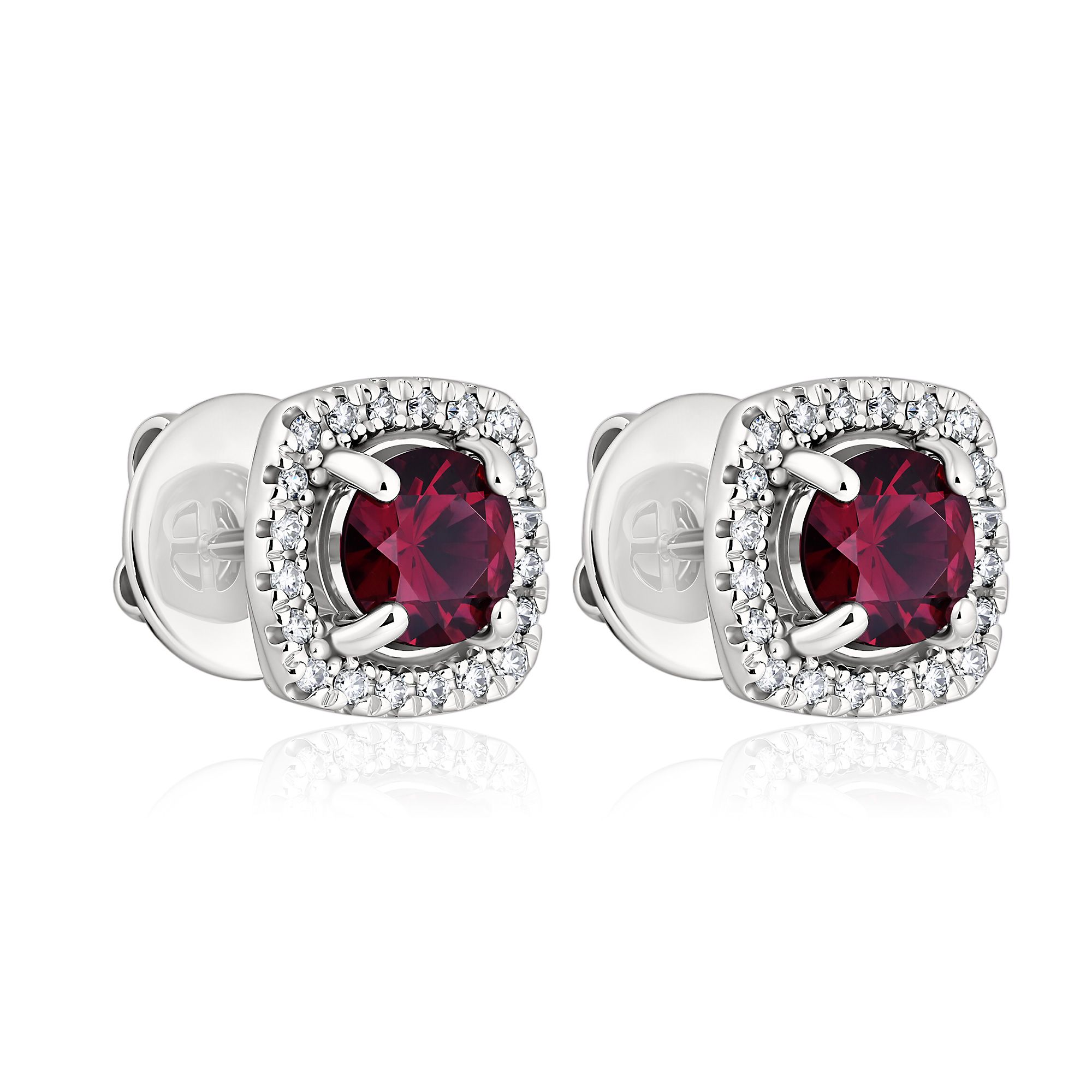 Пусеты из белого золота с бриллиантами и родолитами 1.3 ct