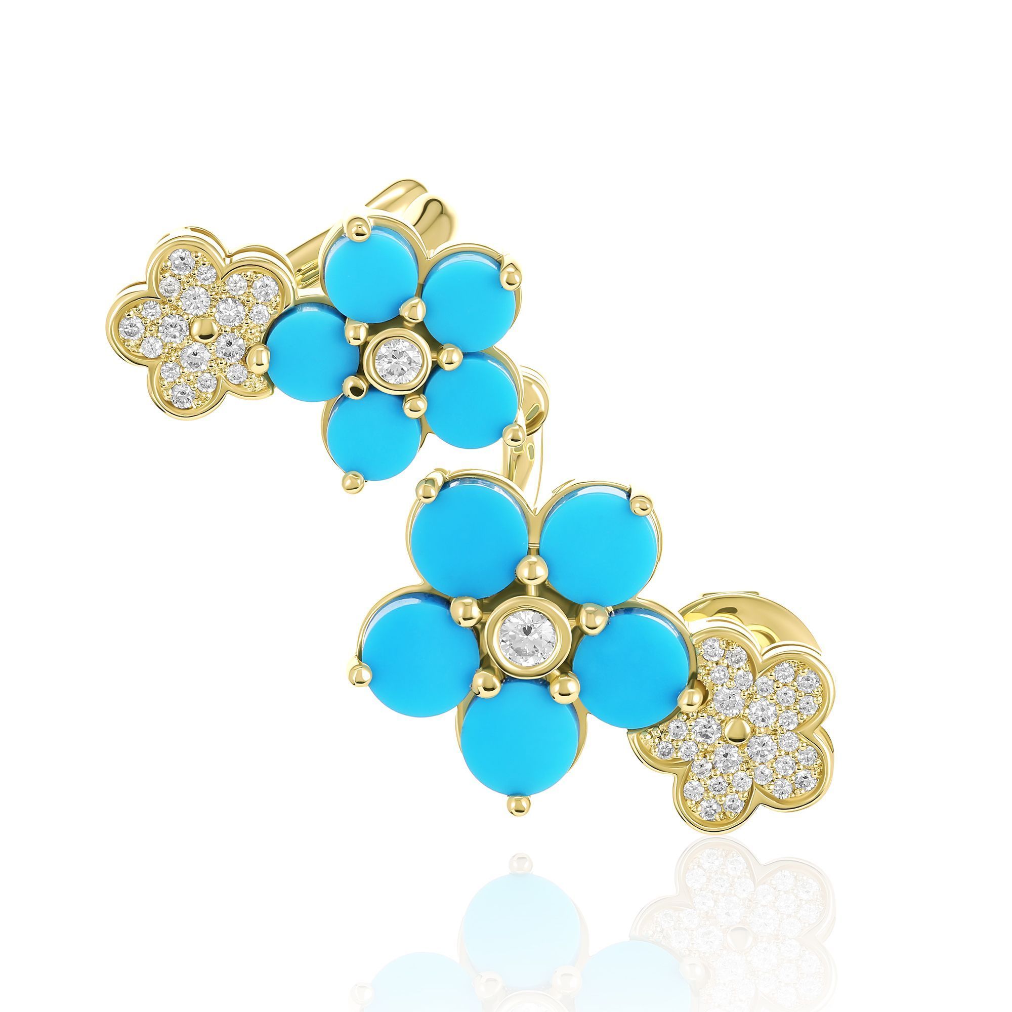 Серьга кафф из желтого золота с бирюзой и бриллиантами