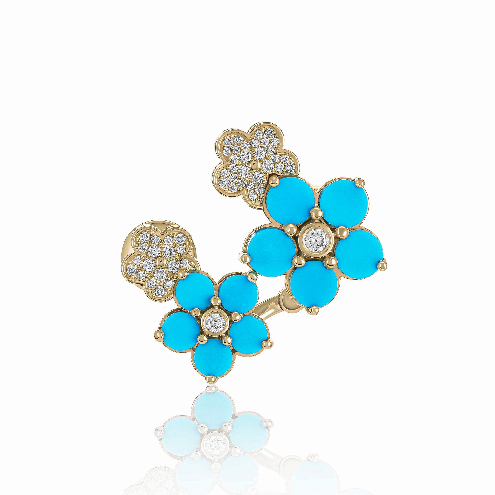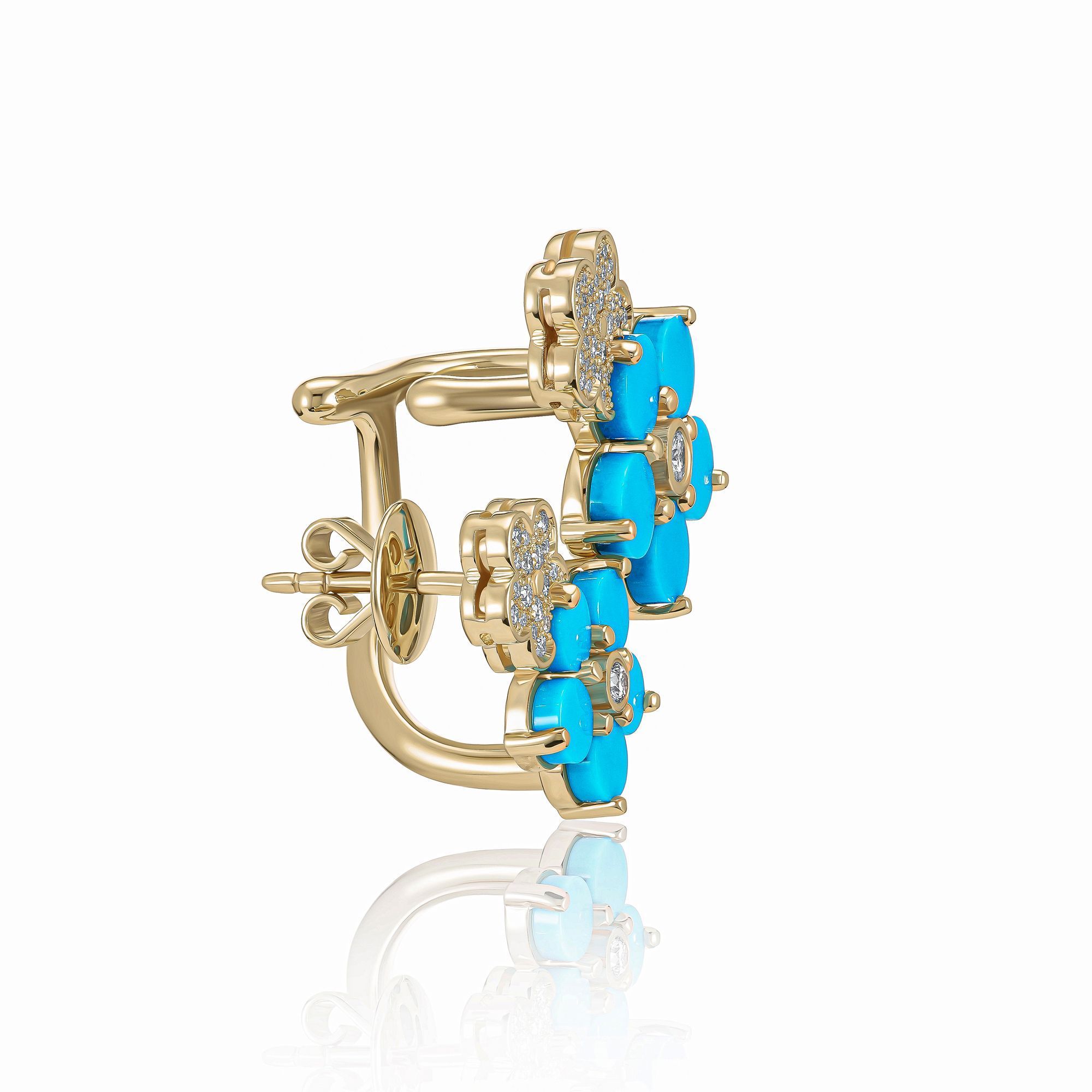 Серьга кафф из желтого золота с бирюзой и бриллиантами