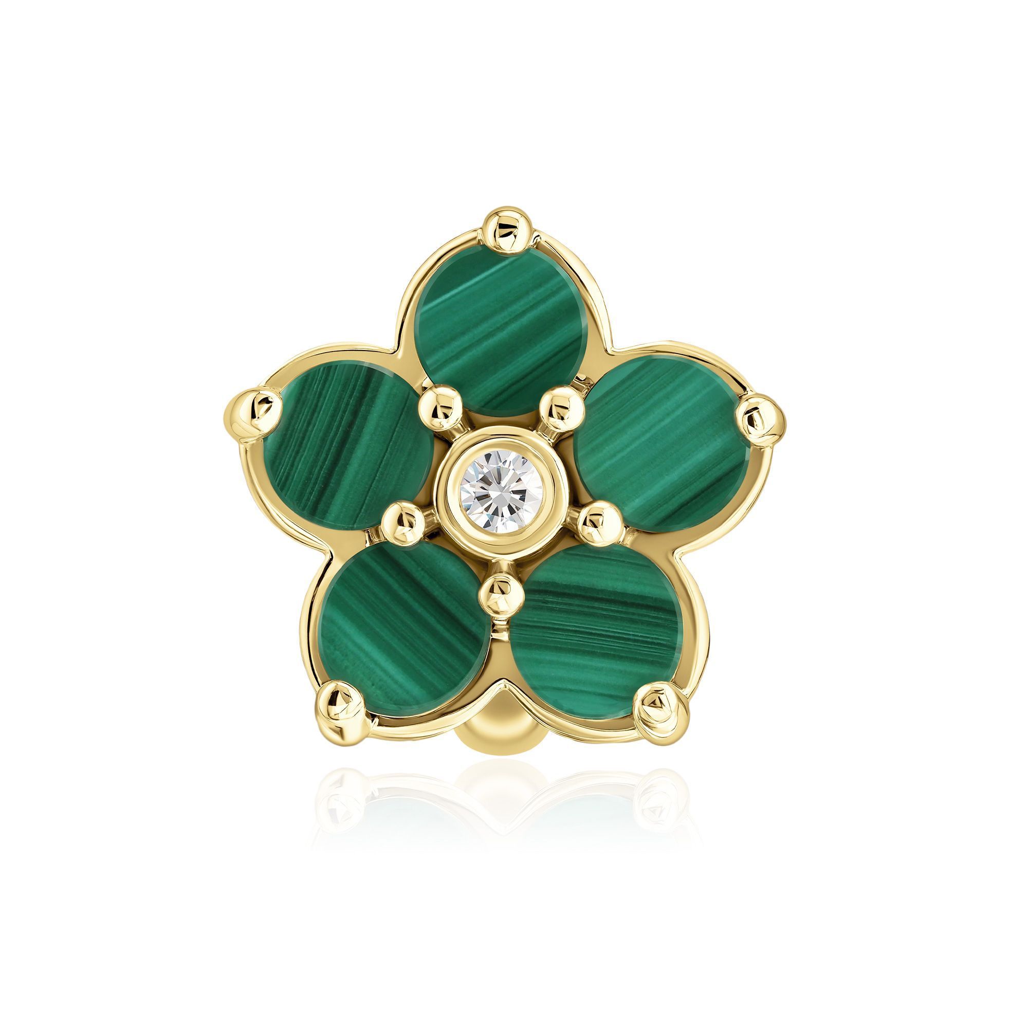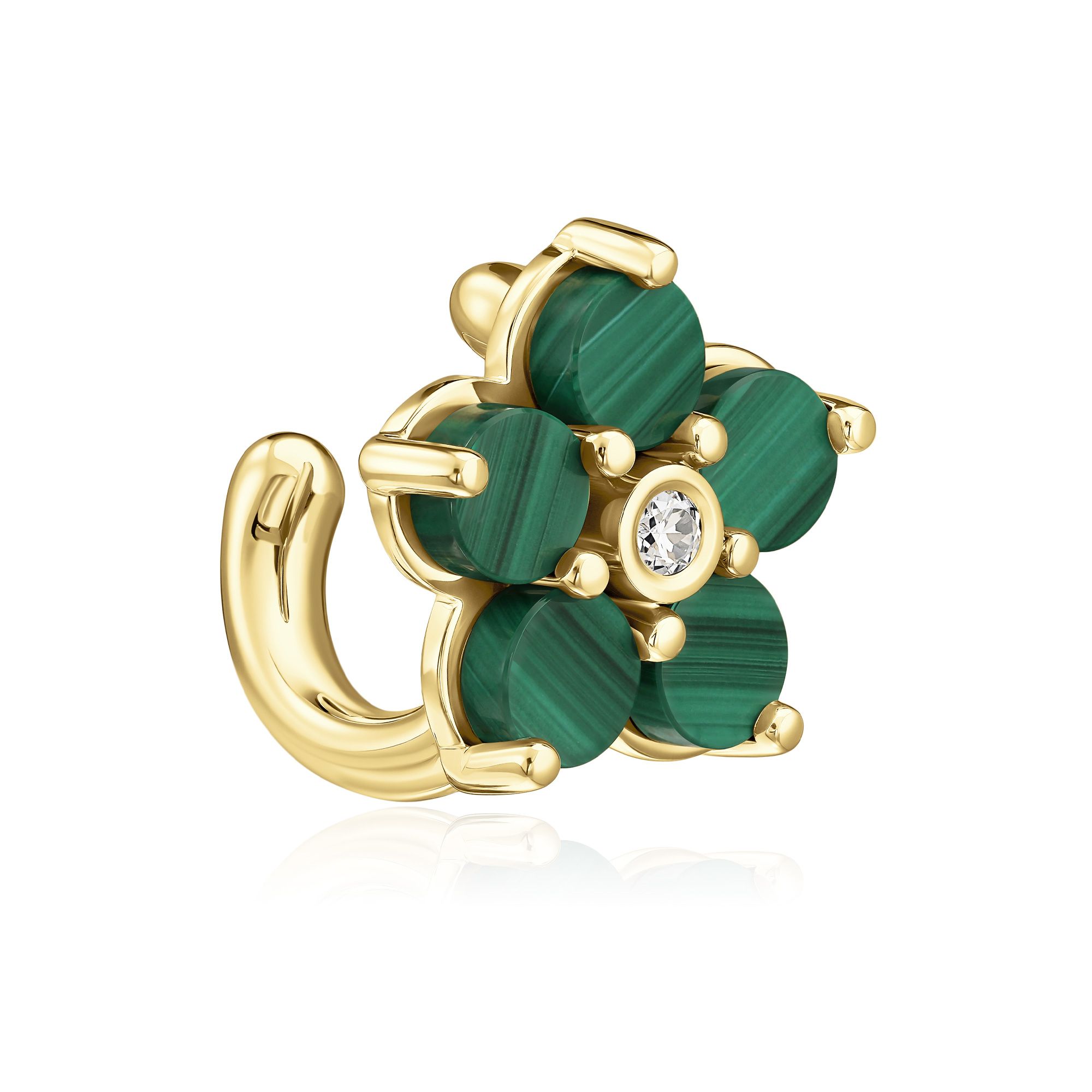 Серьга кафф из желтого золота с малахитом и бриллиантом