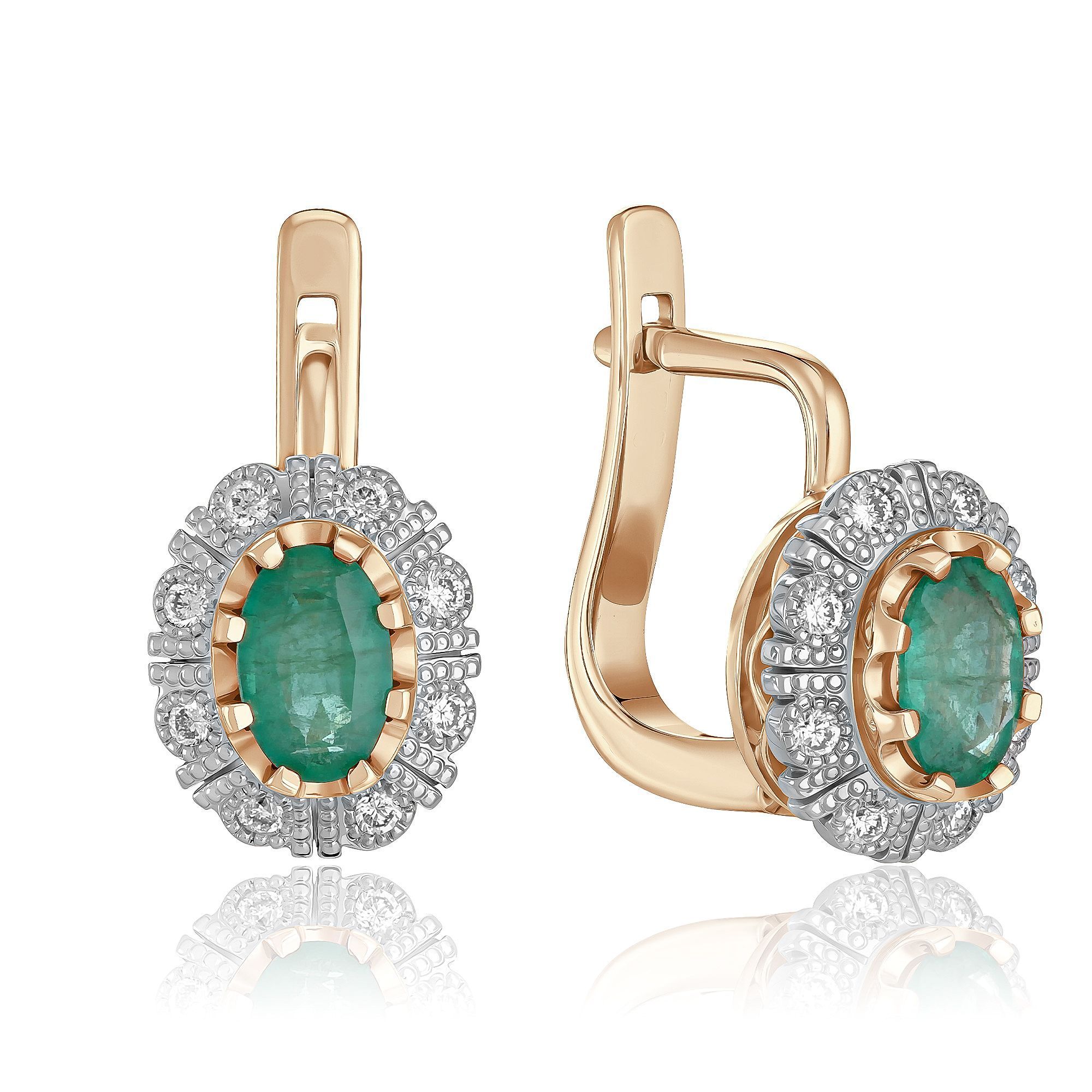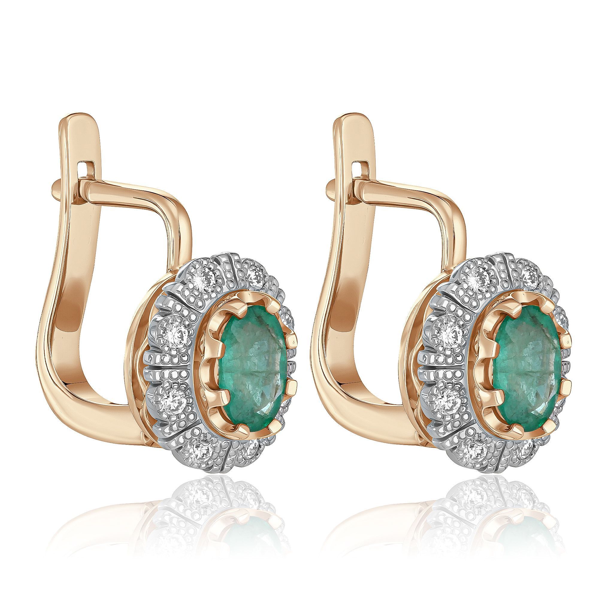 Серьги из красного золота с бриллиантами и изумрудами