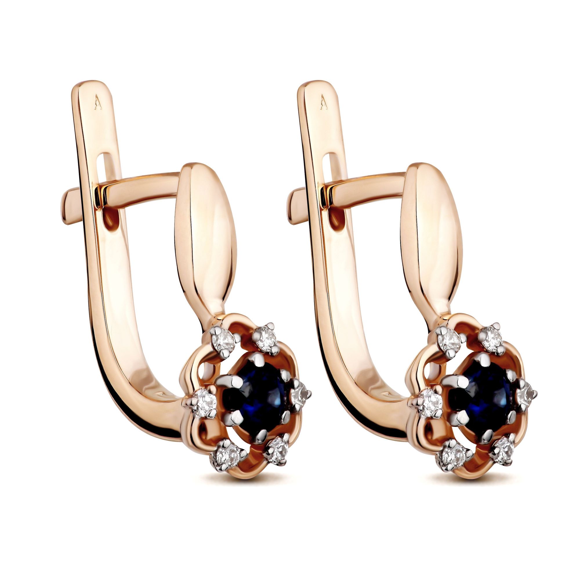 Серьги из красного золота с сапфирами и бриллиантами