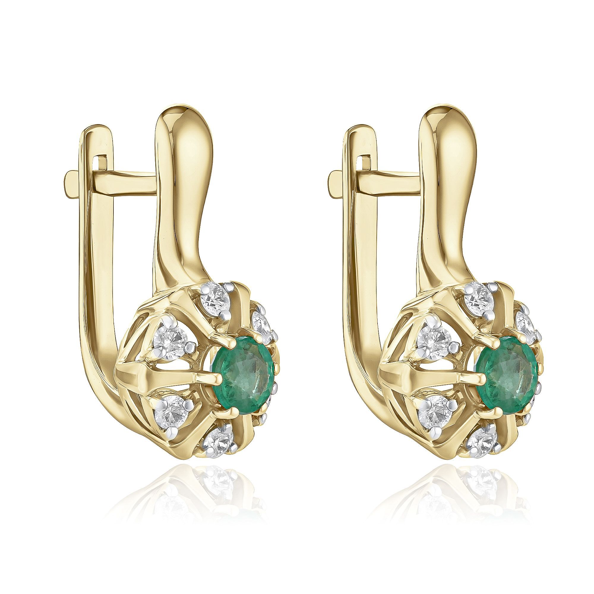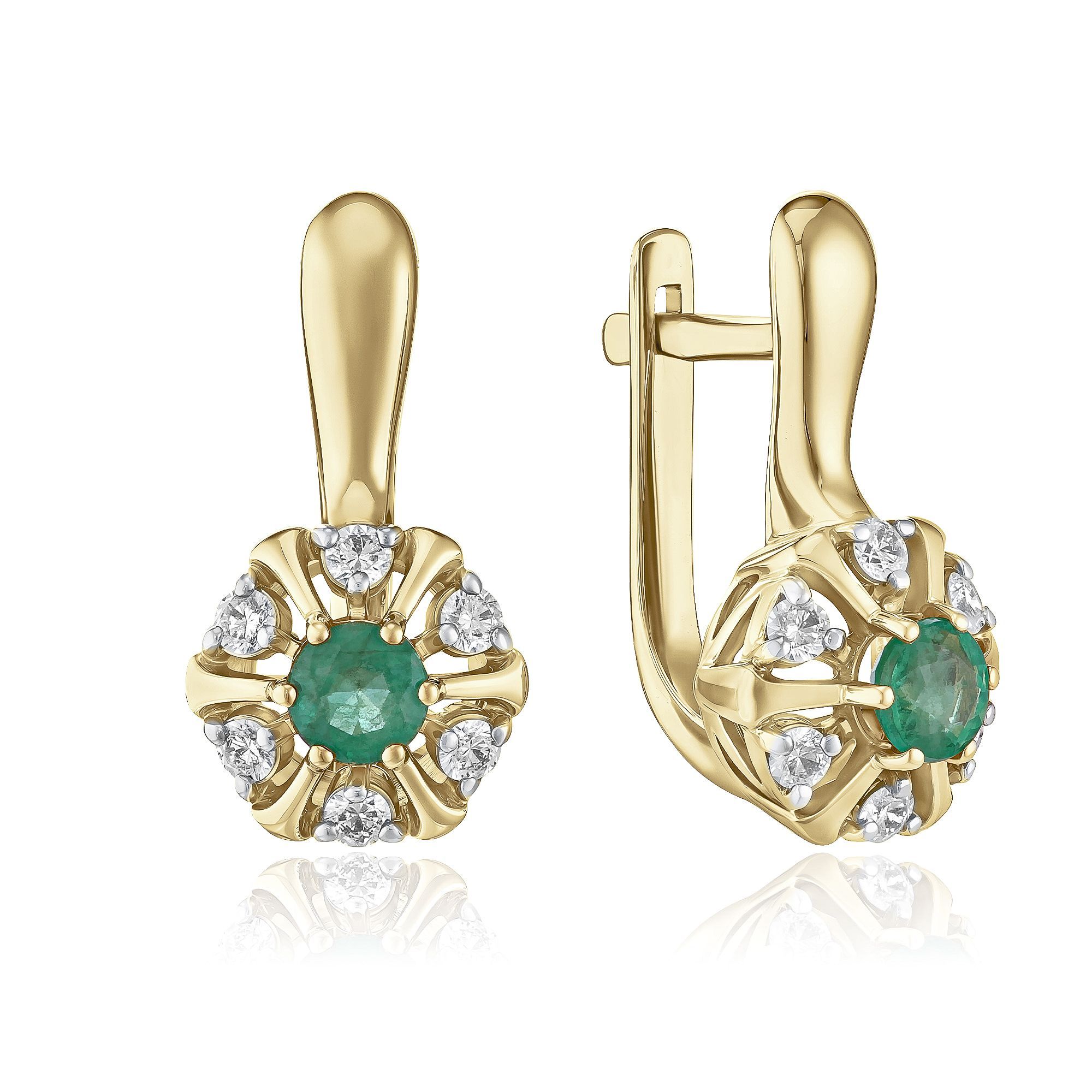 Серьги из желтого золота с изумрудами и бриллиантами