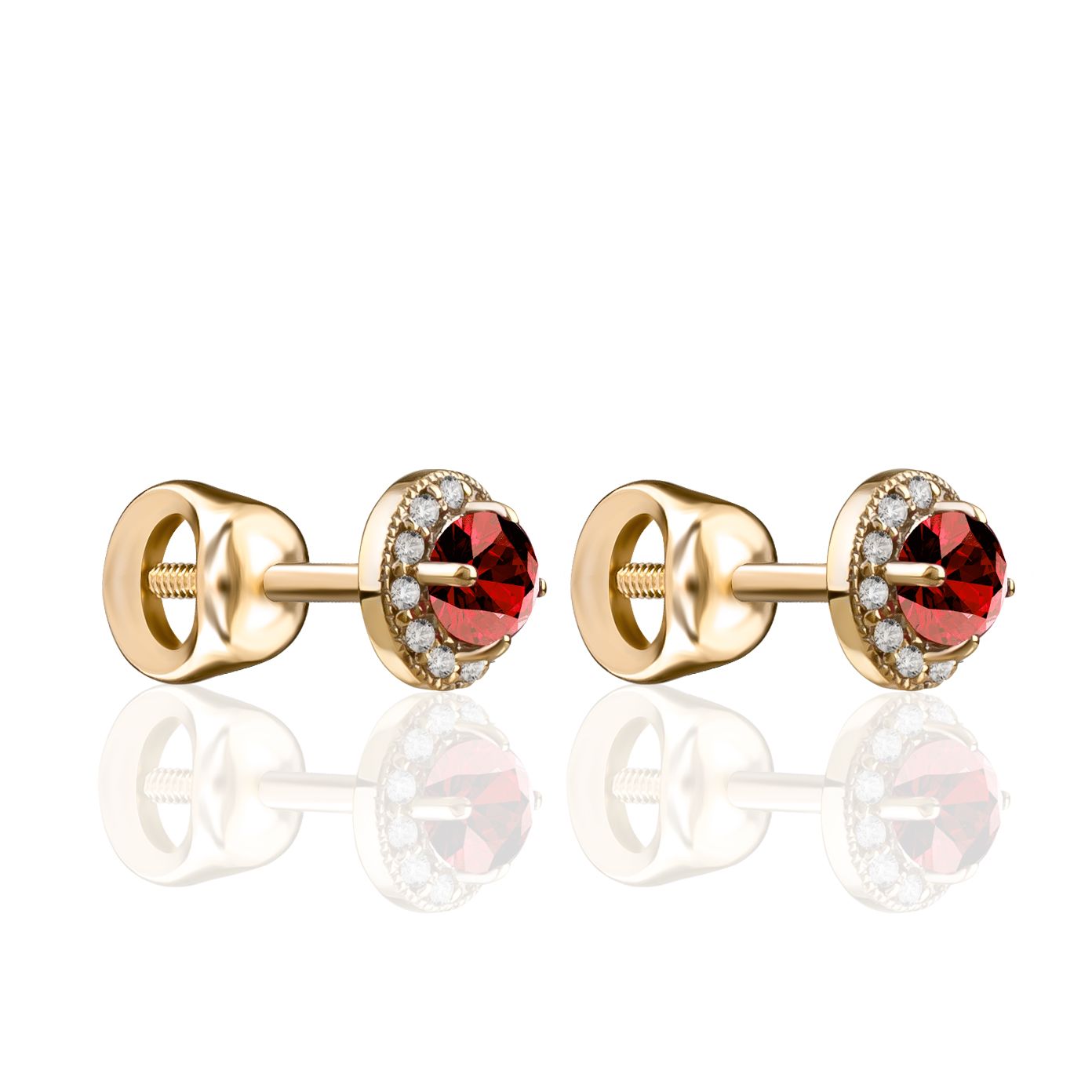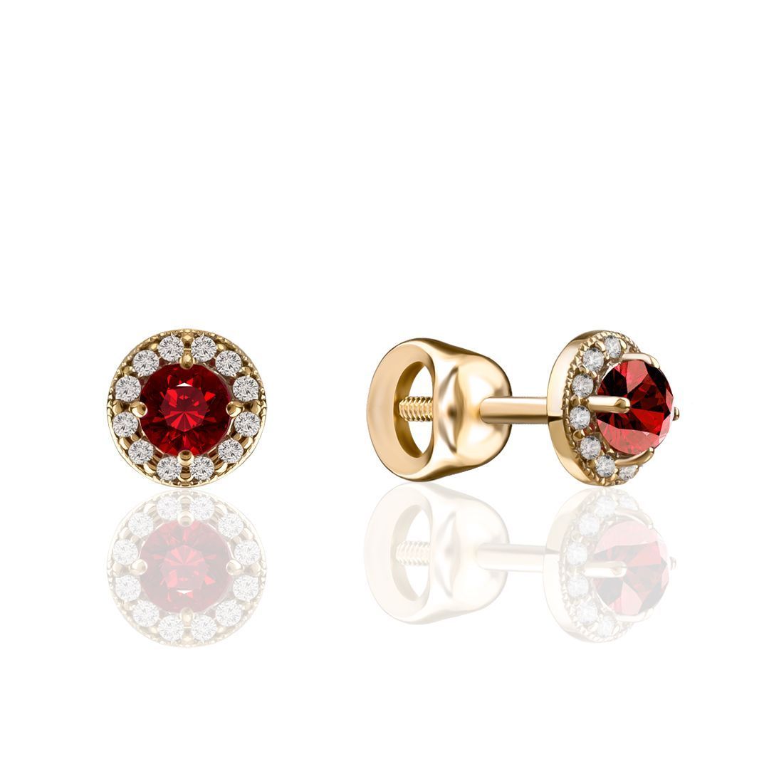 Пусеты из желтого золота с альмандинами и бриллиантами