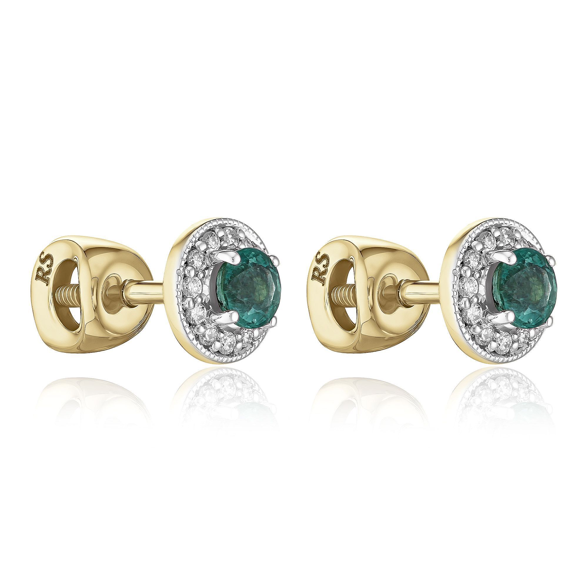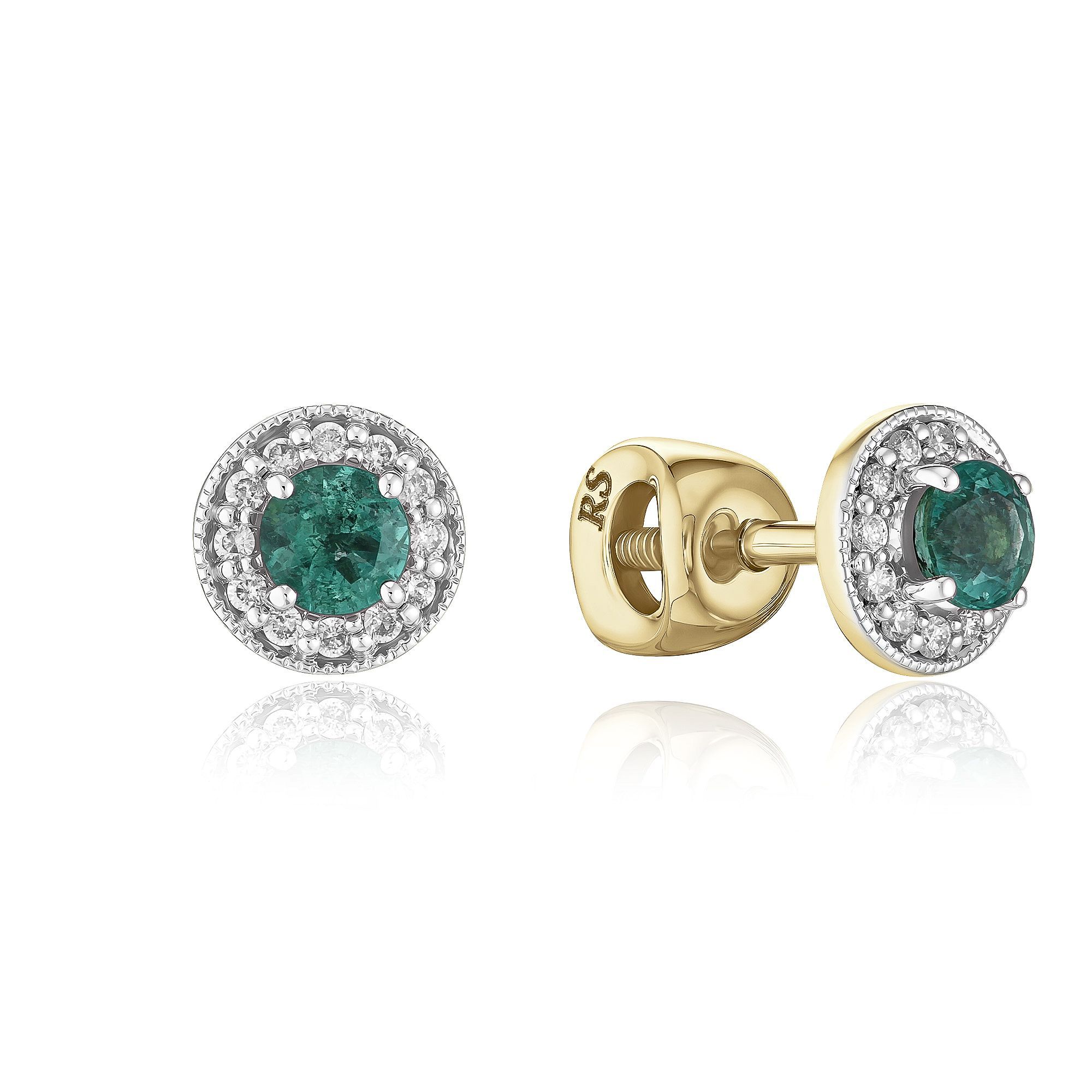 Пусеты из желтого золота с изумрудами и бриллиантами