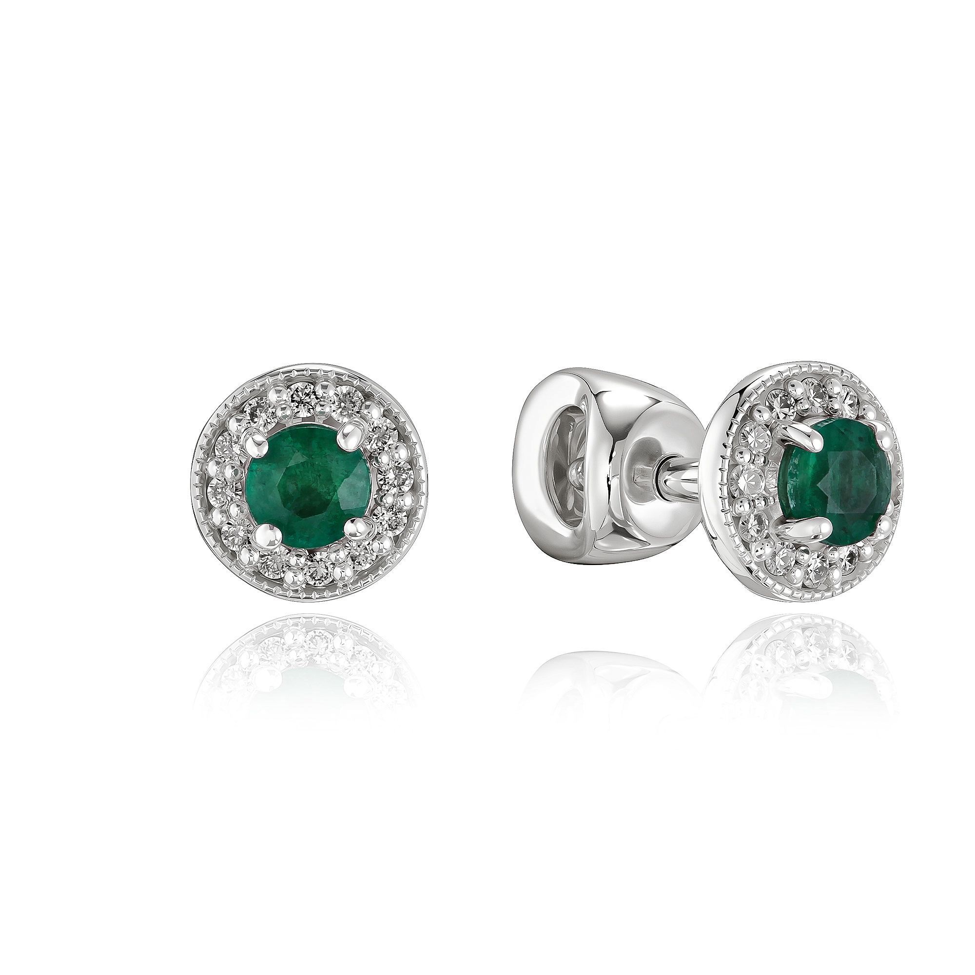 Пусеты из белого золота с изумрудами и бриллиантами
