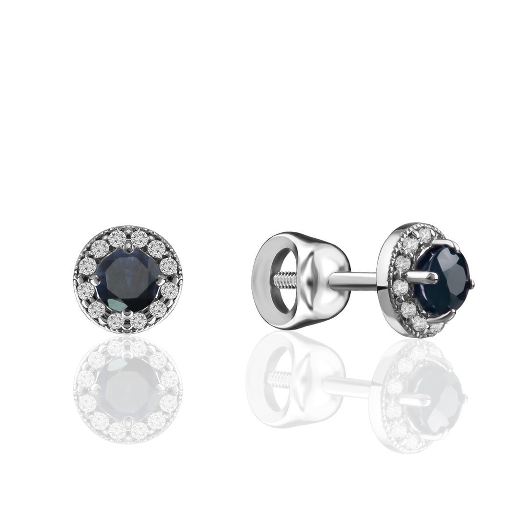Пусеты из белого золота с сапфирами и бриллиантами