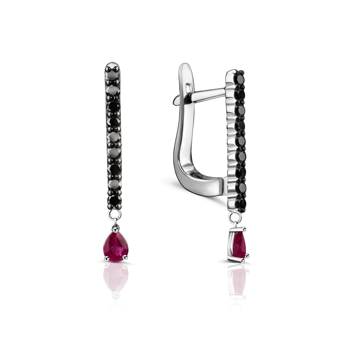 Серьги из белого золота с рубинами и бриллиантами