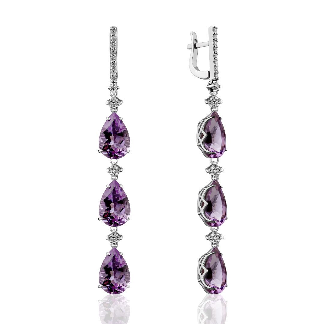 Серьги из белого золота с бриллиантами и аметистами