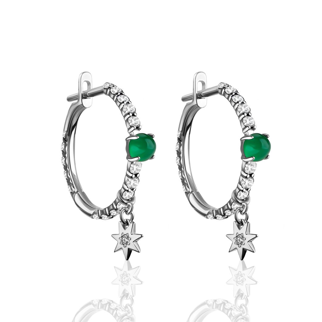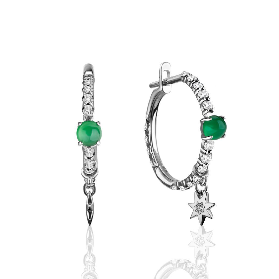 Серьги из белого золота с сапфирами, бриллиантами и хризопразами