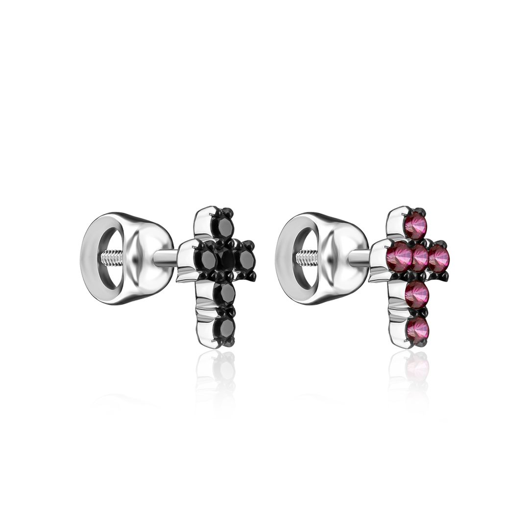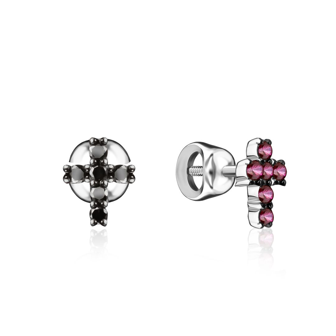Пусеты из белого золота с рубинами и бриллиантами