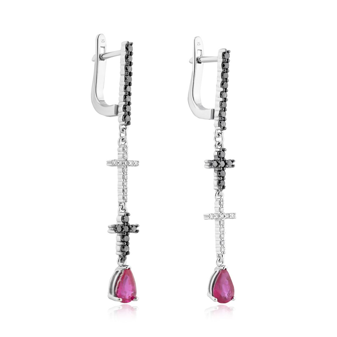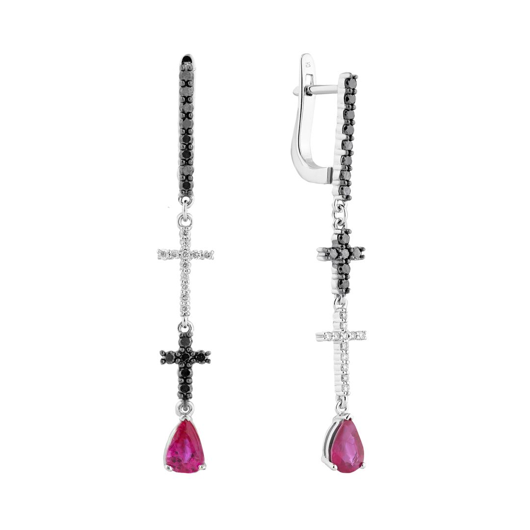 Серьги из белого золота с рубинами и бриллиантами