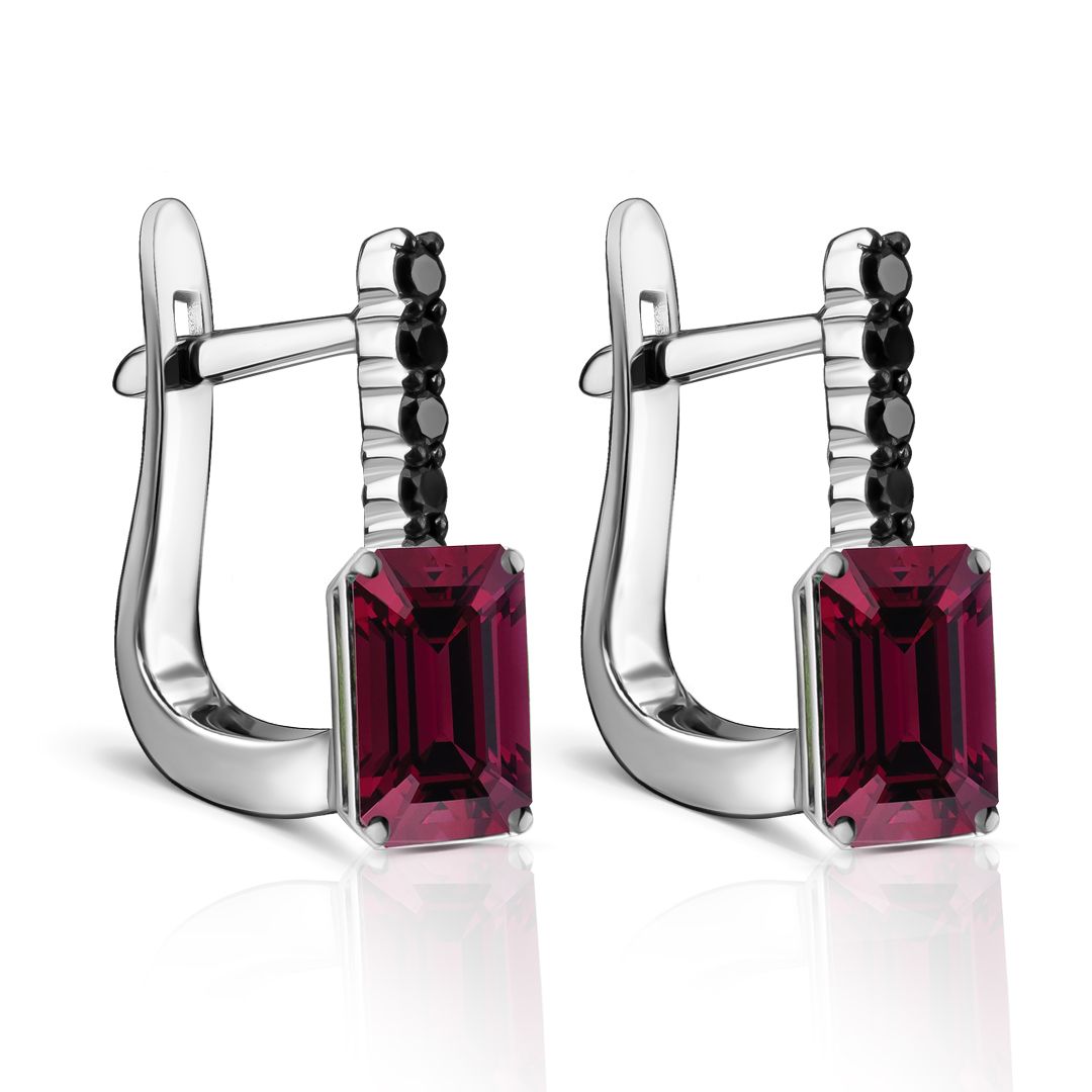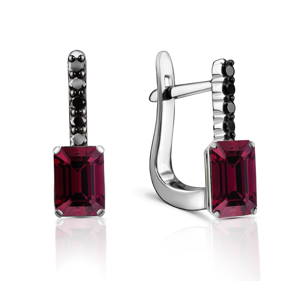 Серьги из белого золота с гранатами и бриллиантами
