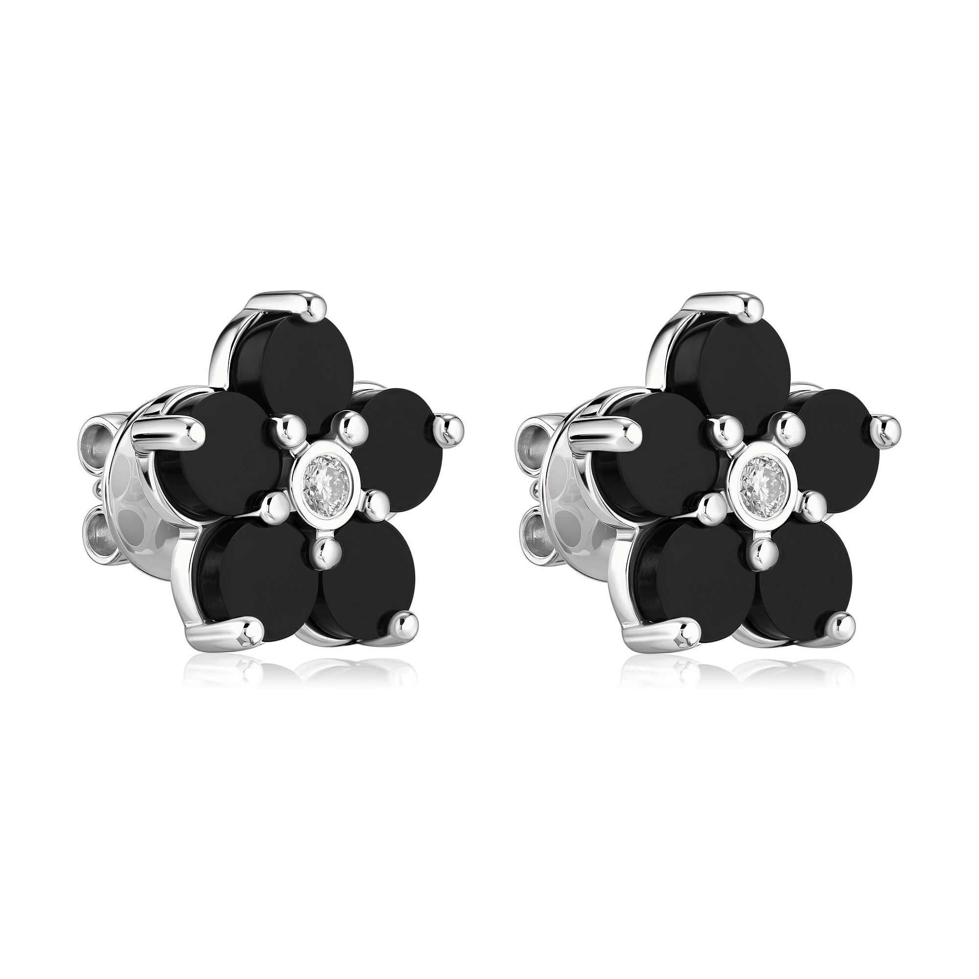 Пусеты из белого золота с ониксами и бриллиантами