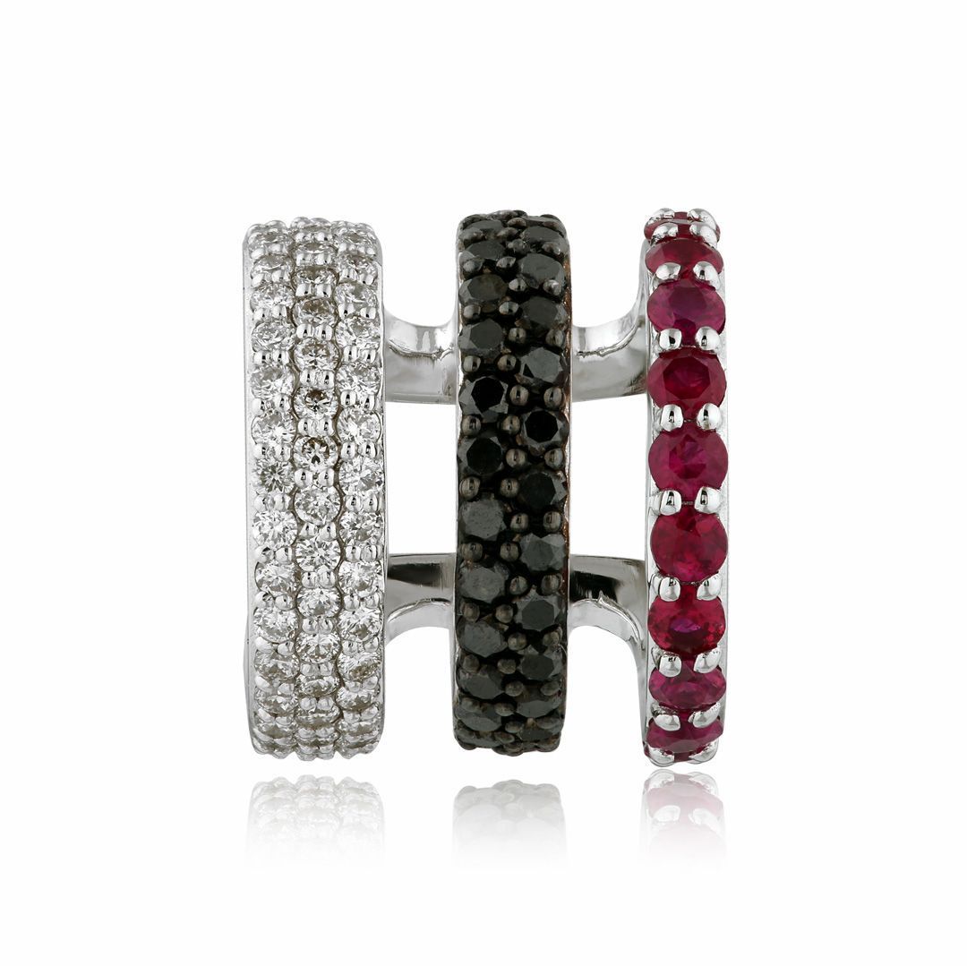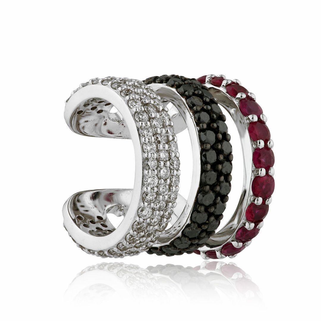 Серьга кафф из белого золота с бриллиантами и рубинами