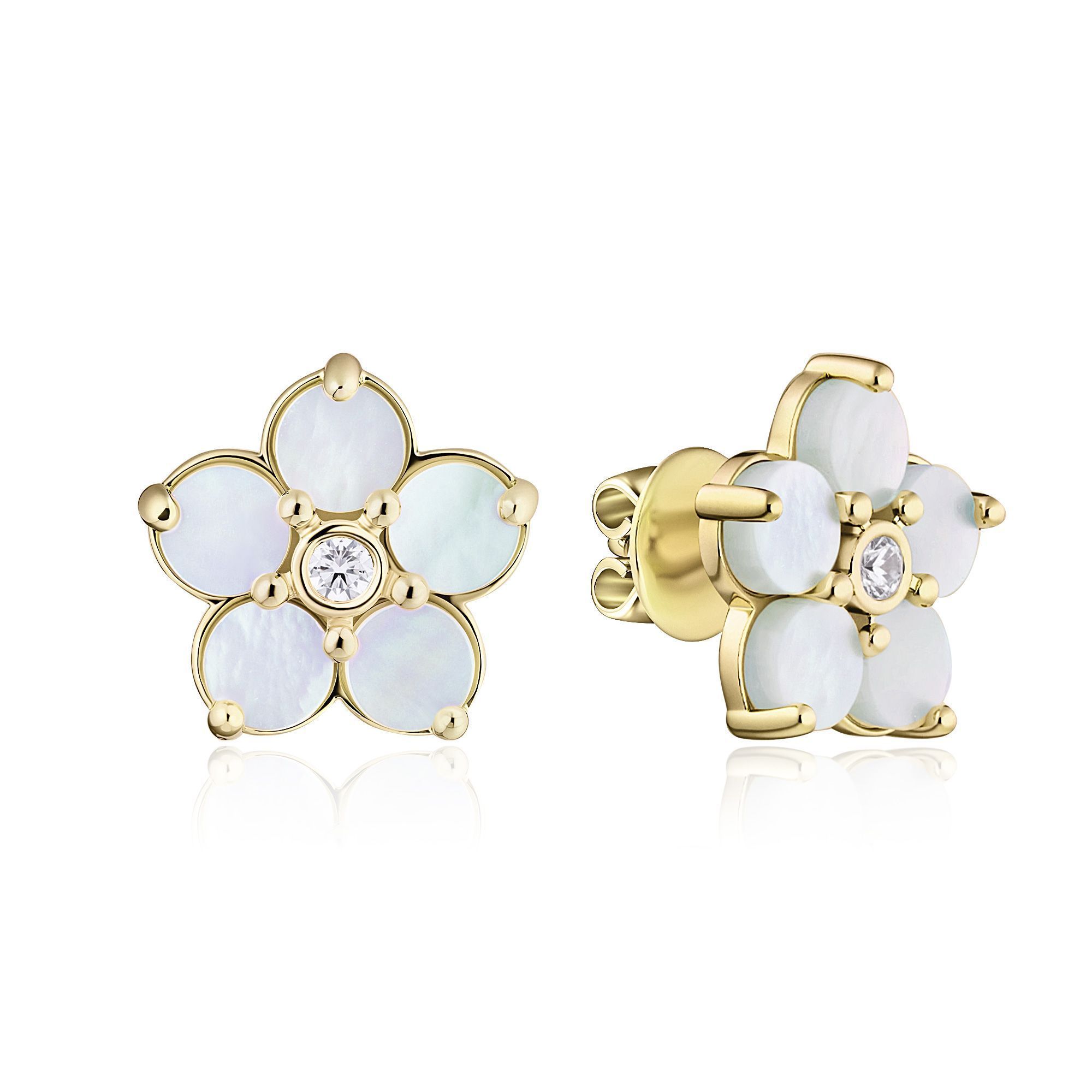 Пусеты из желтого золота с перламутром и бриллиантами