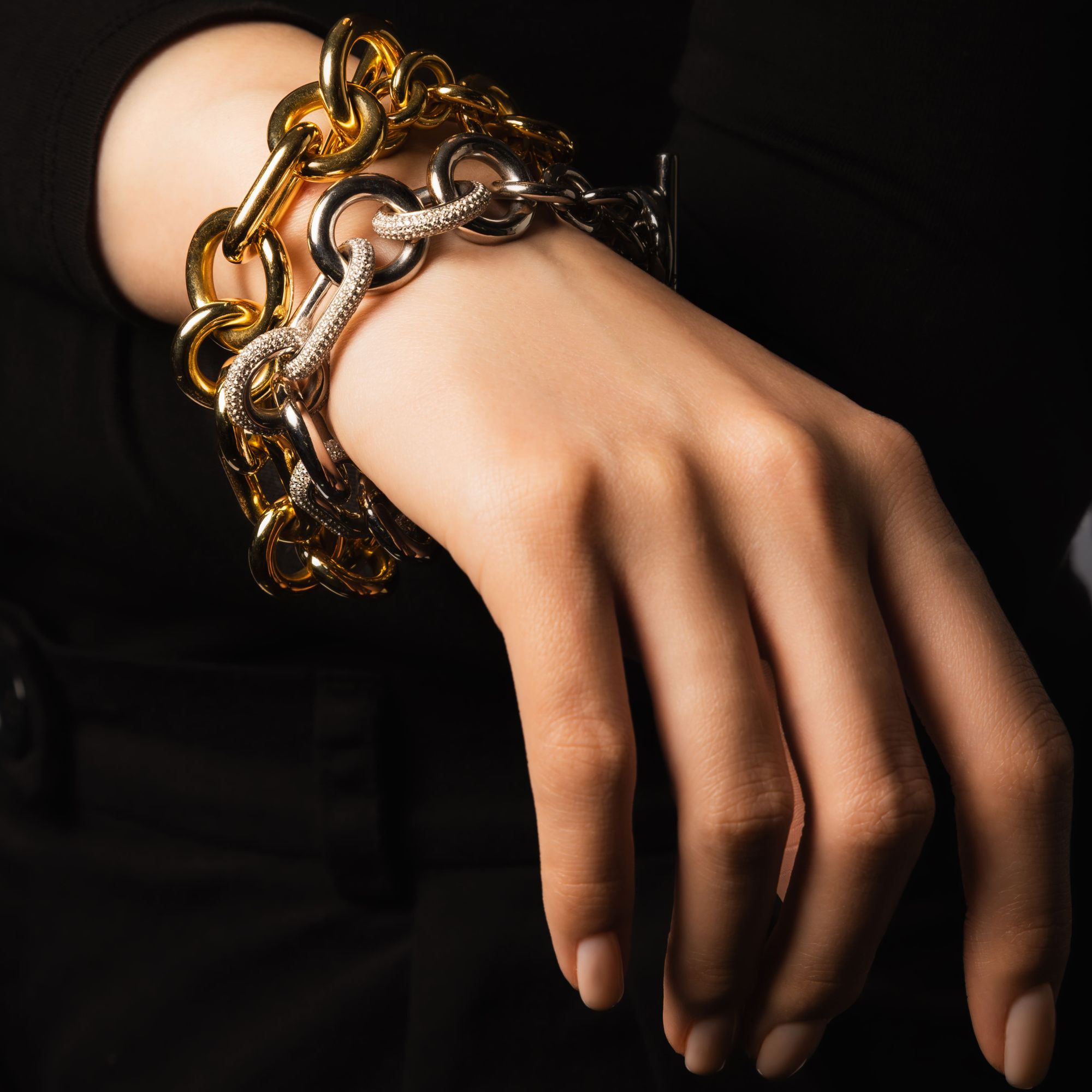 В коллекции CHAIN культовая эстетика белого золота и бриллиантовой обсыпки с уникальной закрепкой «паве» вступает в диалог с непокорным, дерзким и смелым духом street fashion. Грубые звенья модного тренда переписывают правила дизайна утонченных ювелирных украшений.