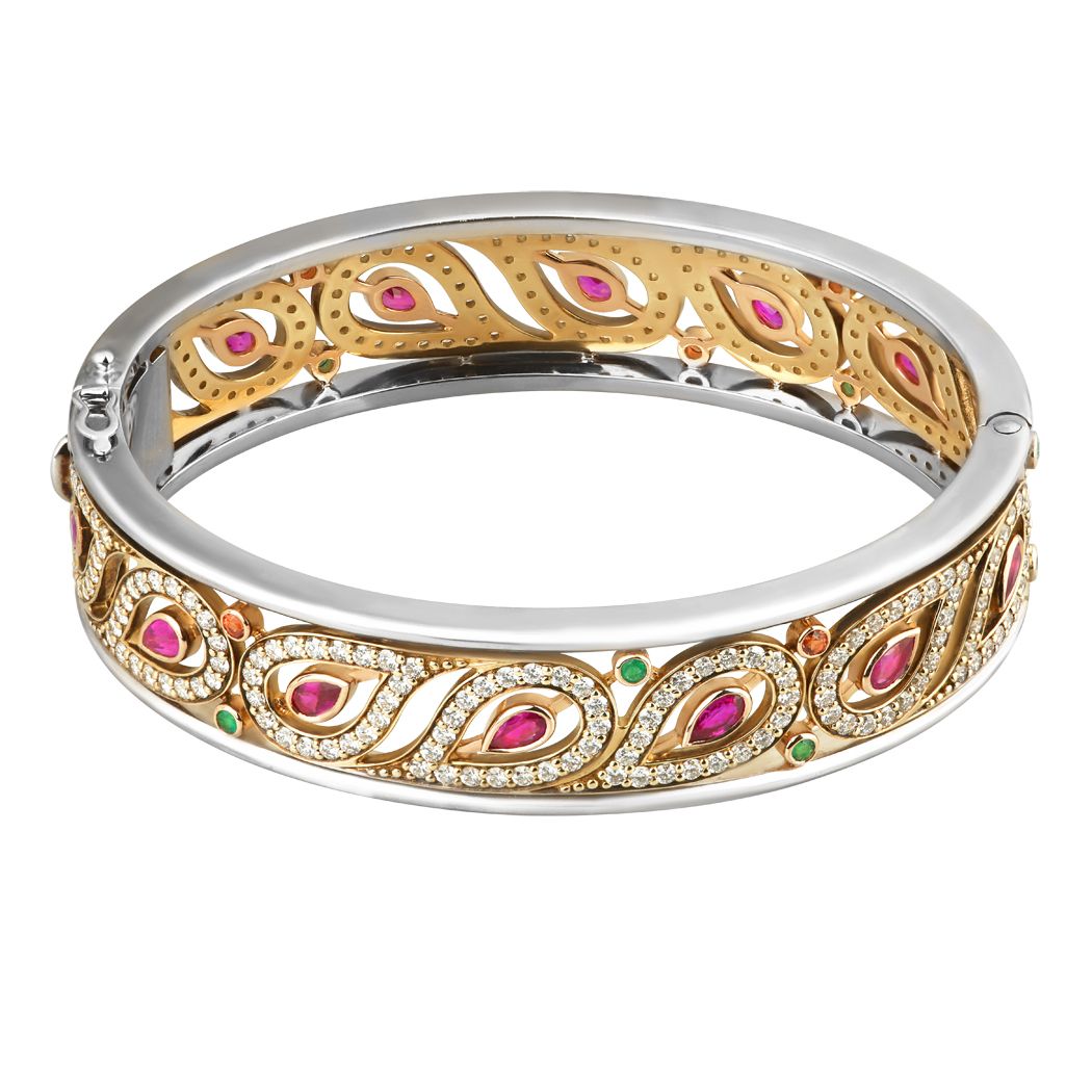 Браслет «Пейсли» из желтого золота с бриллиантами, изумрудами, сапфирами и рубинами