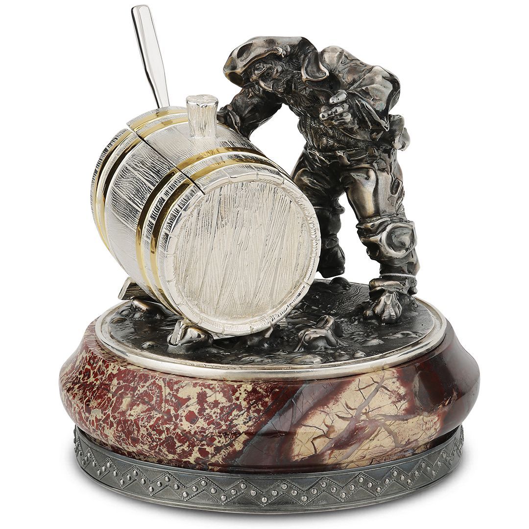 Украшение интерьера «Рыбак с бочкой» из серебра с яшмой