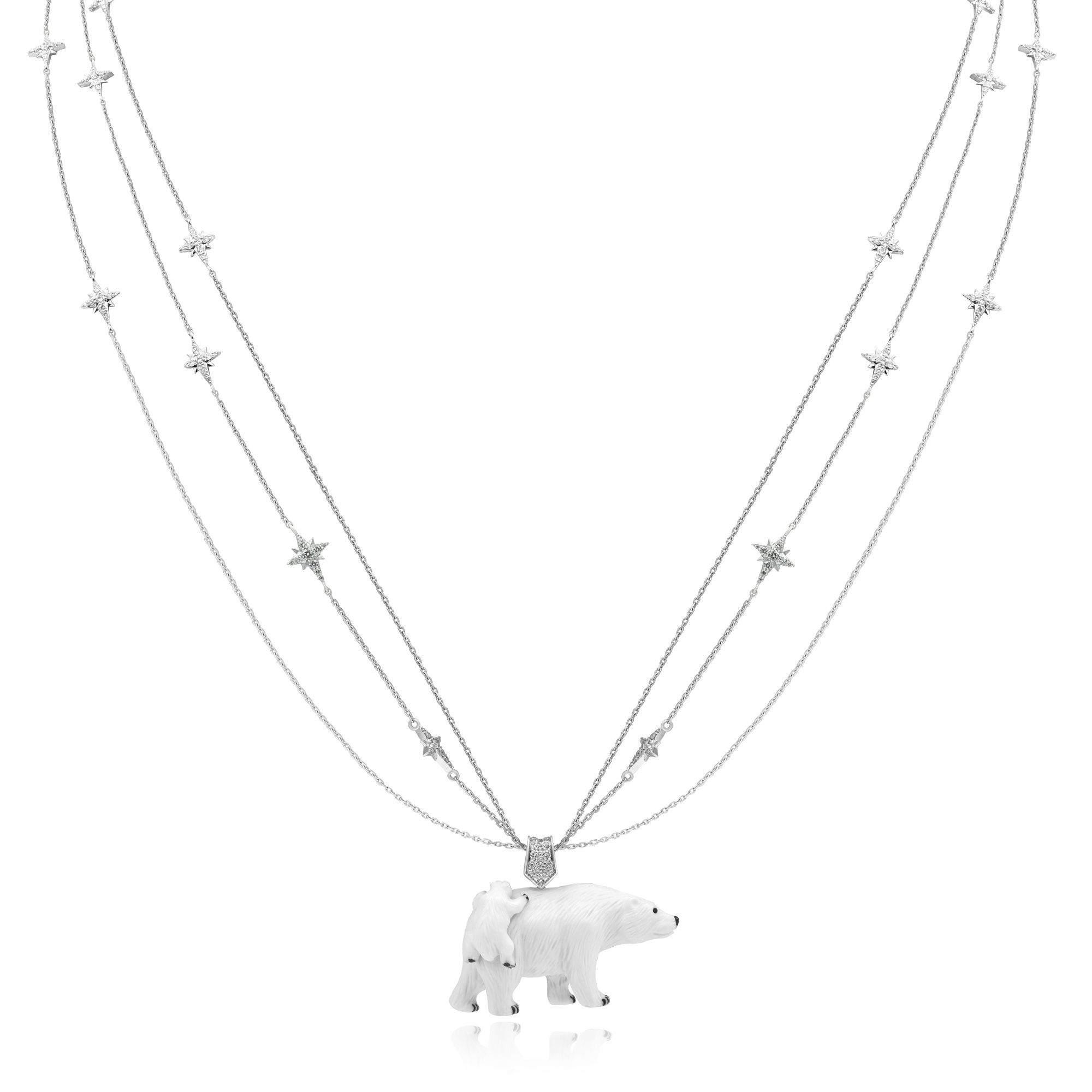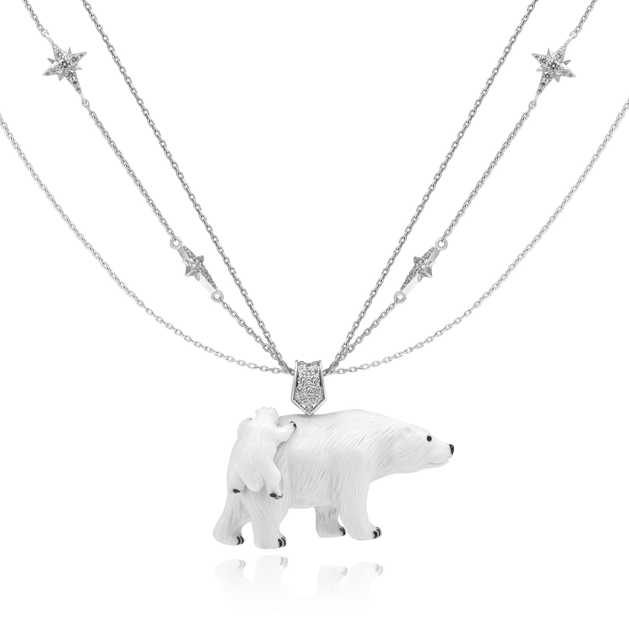 - Колье «Созвездие» из белого золота с бриллиантами и кахолонгом