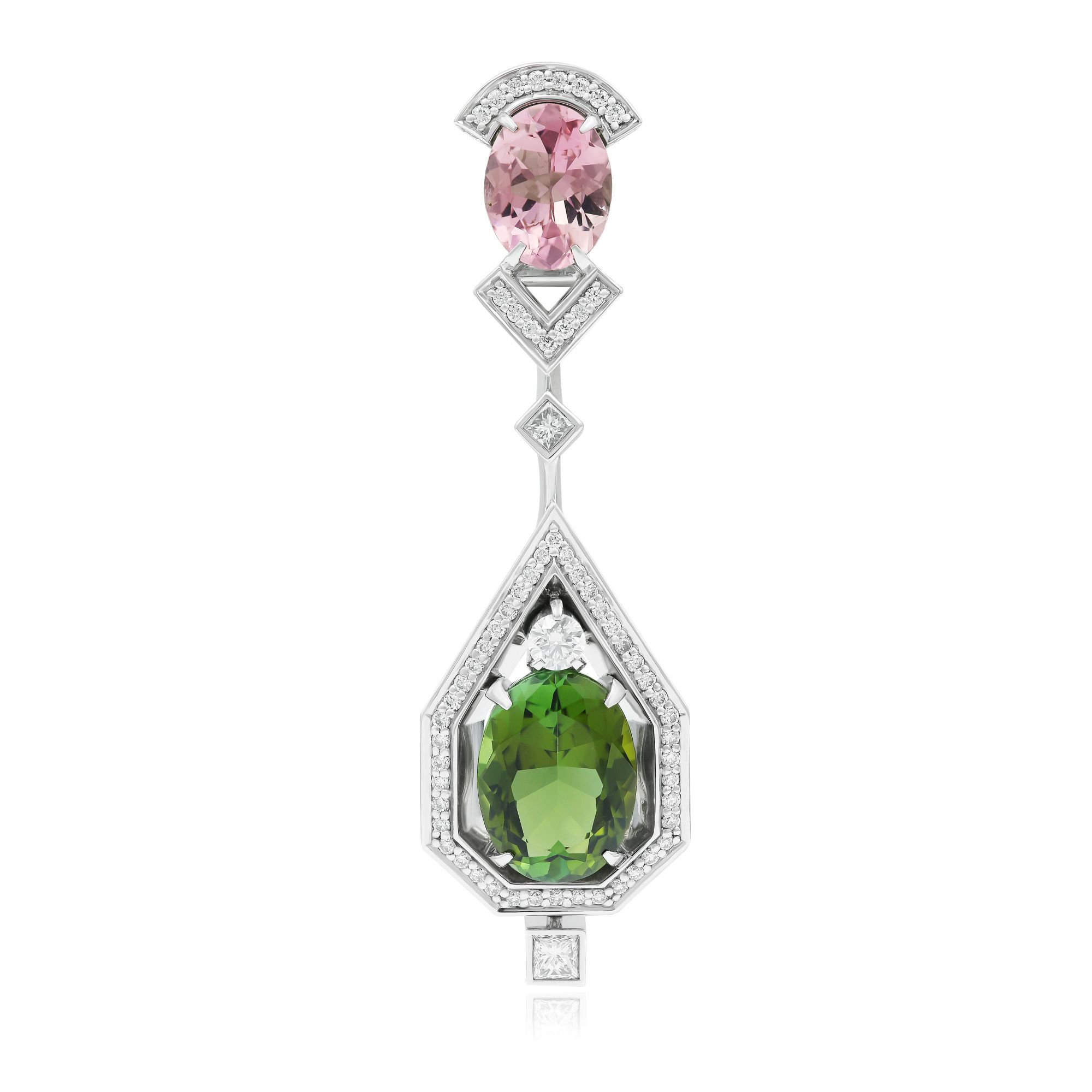 Подвеска из белого золота с турмалином 4.77 ct и бриллиантами
