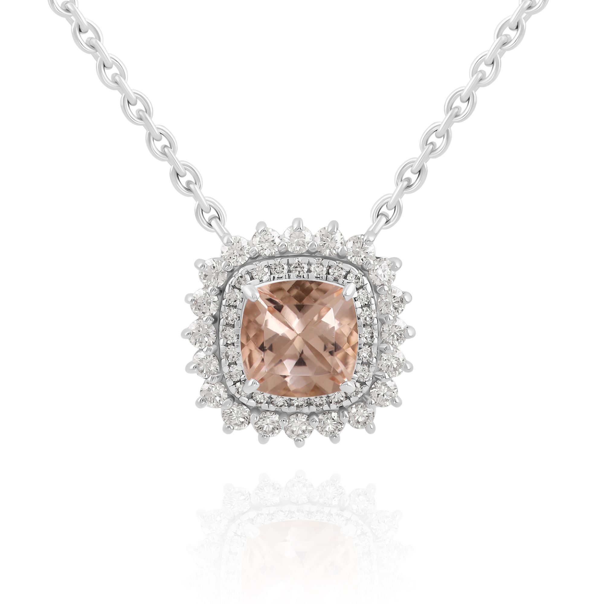 Колье из белого золота с бриллиантами и морганитом 1.4 ct
