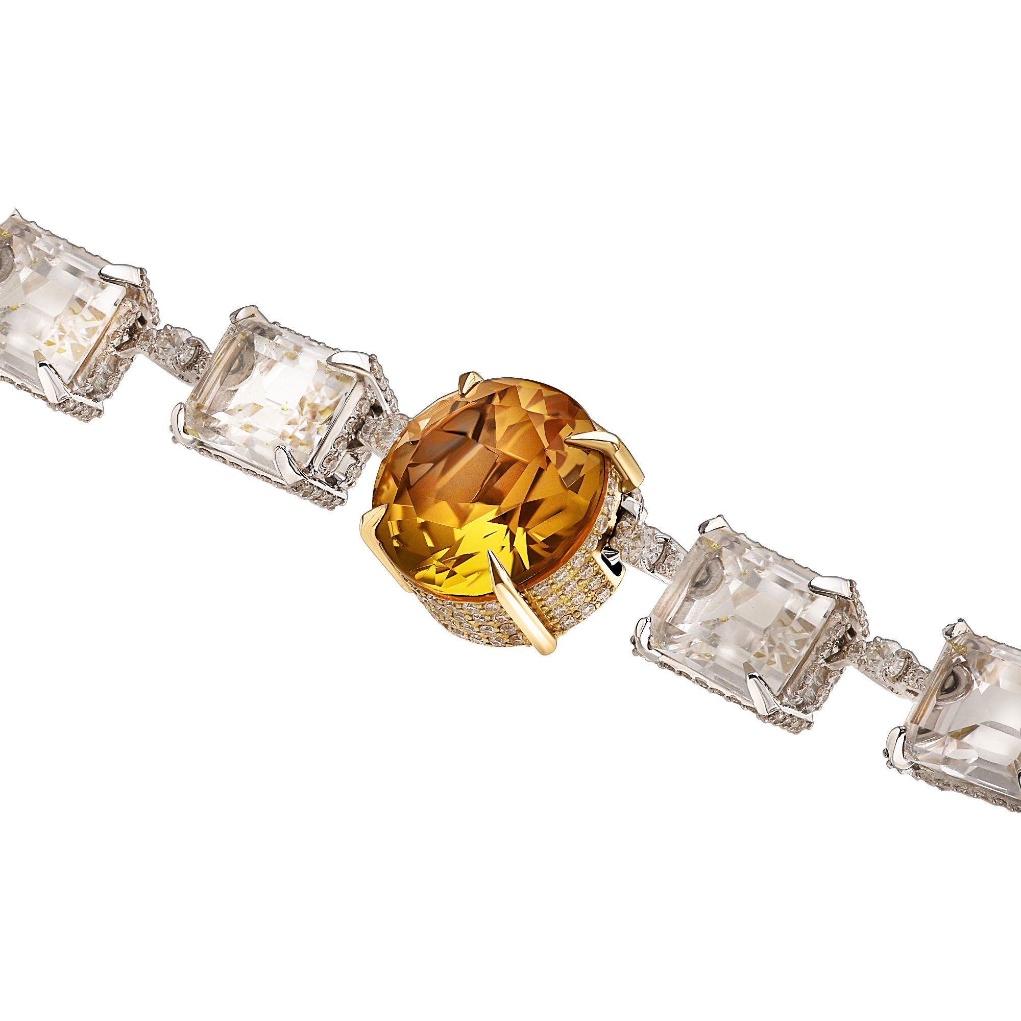 Колье из белого золота с бриллиантами, кварцами 47.95 ct и цитринами 63.55 ct