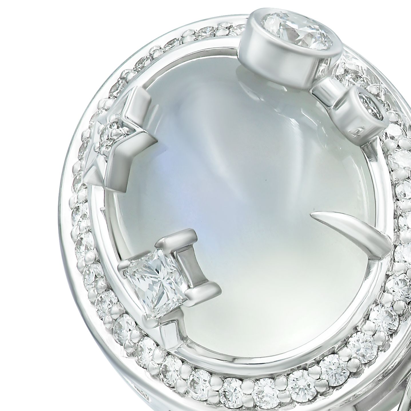 Кольцо из белого золота с бриллиантами и лунным камнем 1.27 ct