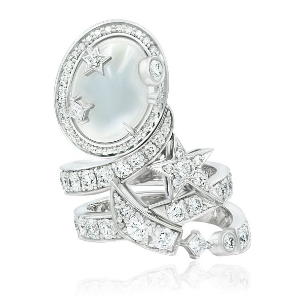 Кольцо из белого золота с бриллиантами и лунным камнем 1.27 ct |