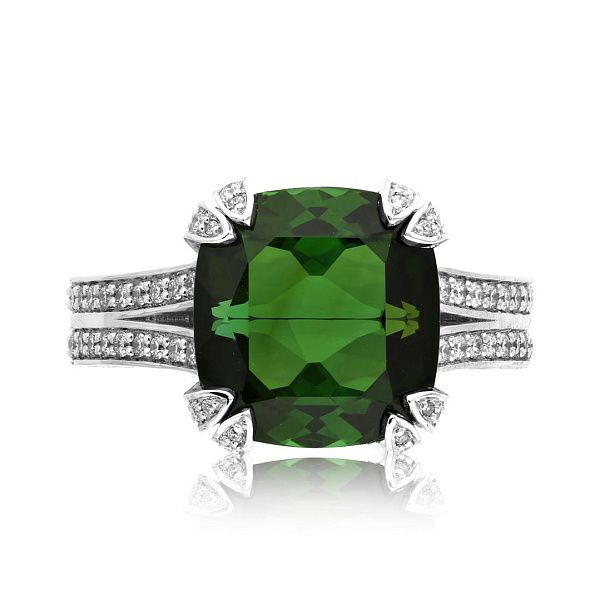 Кольцо из белого золота с турмалином 7.89 ct и бриллиантами