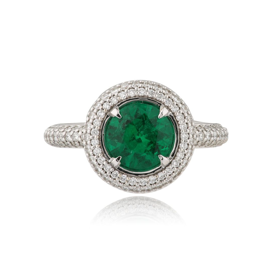 Кольцо из белого золота с изумрудом 1.37 ct и бриллиантами