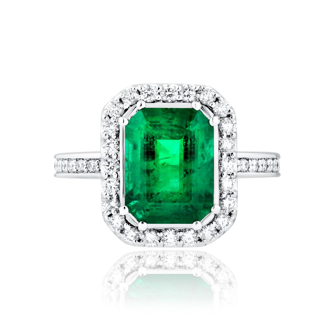 Кольцо из белого золота с изумрудом 3.31 ct и бриллиантами