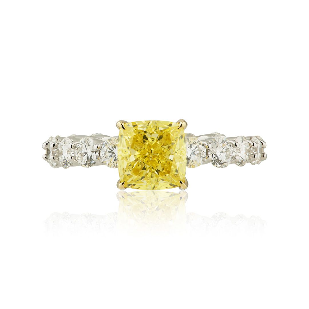 Кольцо из белого золота с желтым бриллиантом 2.11 ct