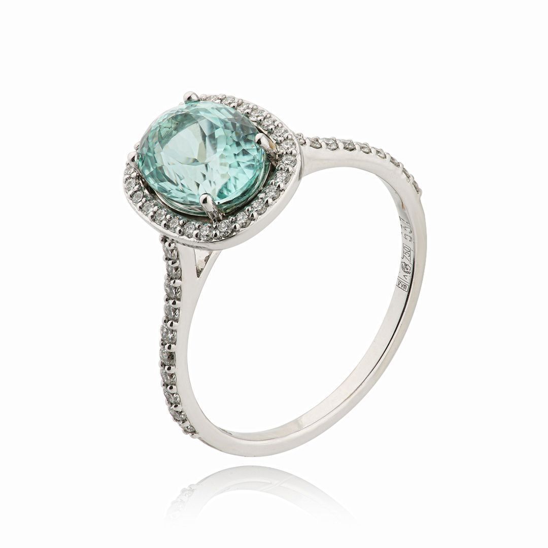 Кольцо из белого золота с турмалином параиба 2.12 ct и бриллиантами