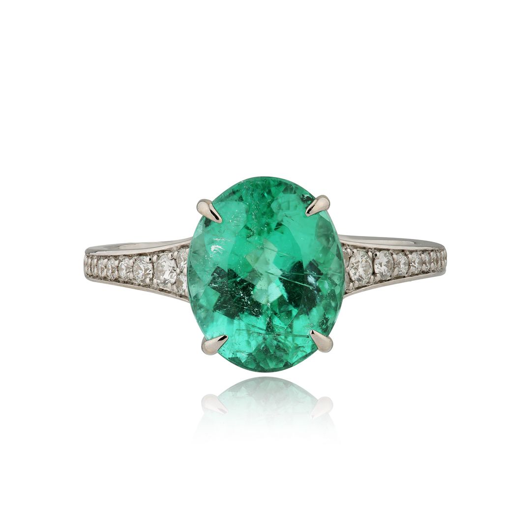 Кольцо из белого золота с турмалином параиба 3.39 ct и бриллиантами