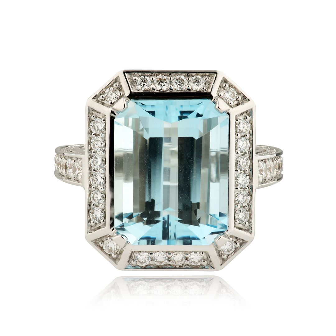 Кольцо из белого золота с аквамарином 8.62 ct и бриллиантами
