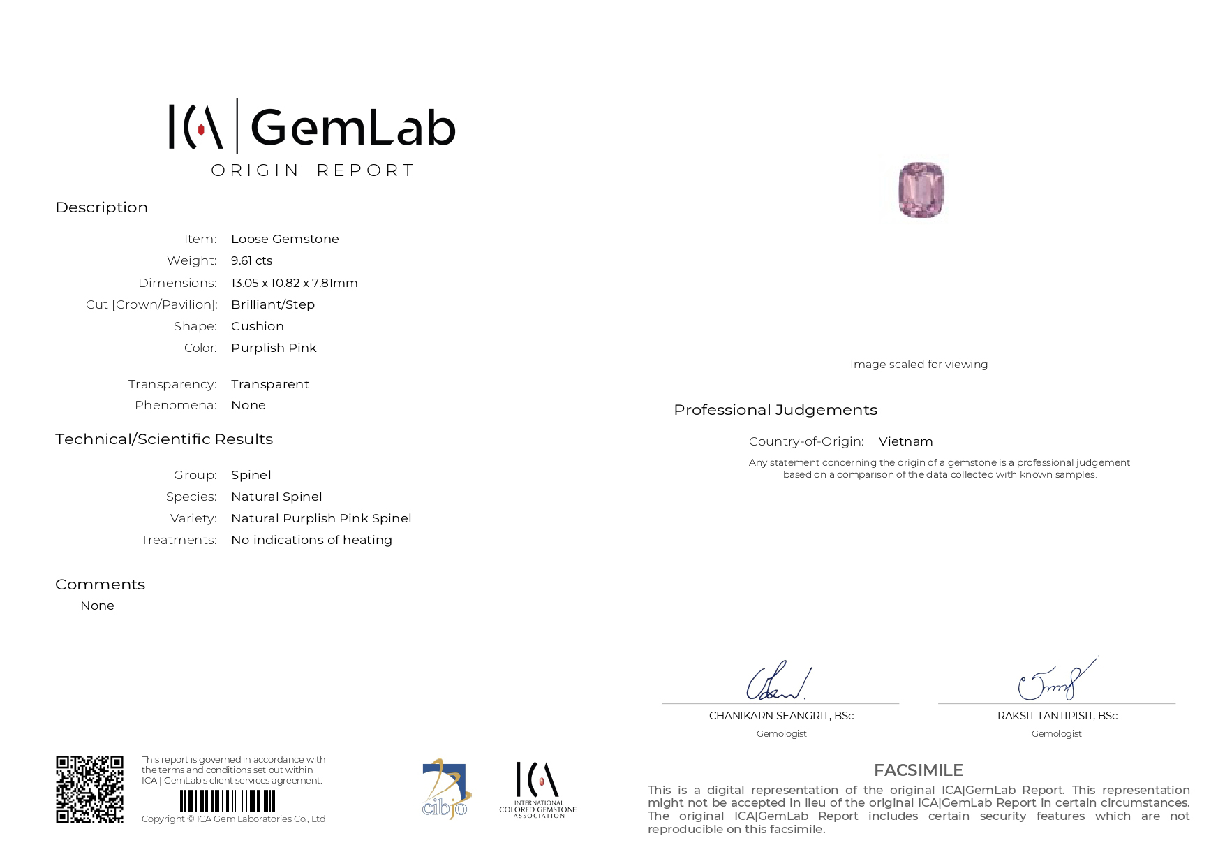 - Шпинель - Количество: 1, Форма: «Антик», Вес: 9.610 ct.